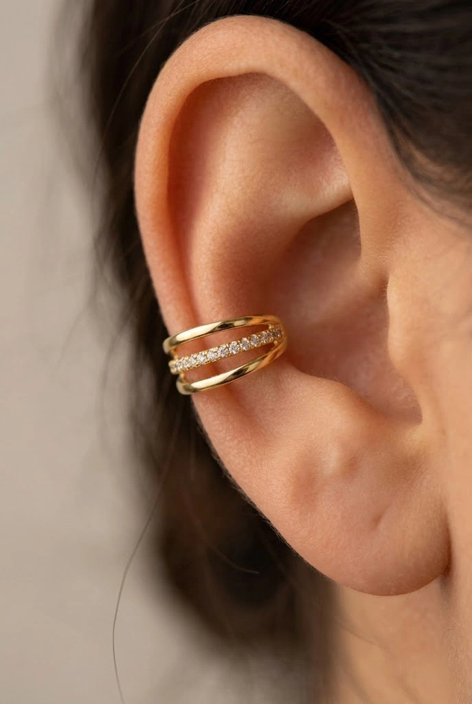 Orta Taş Model Gold Altın Kaplama Ear Cuff