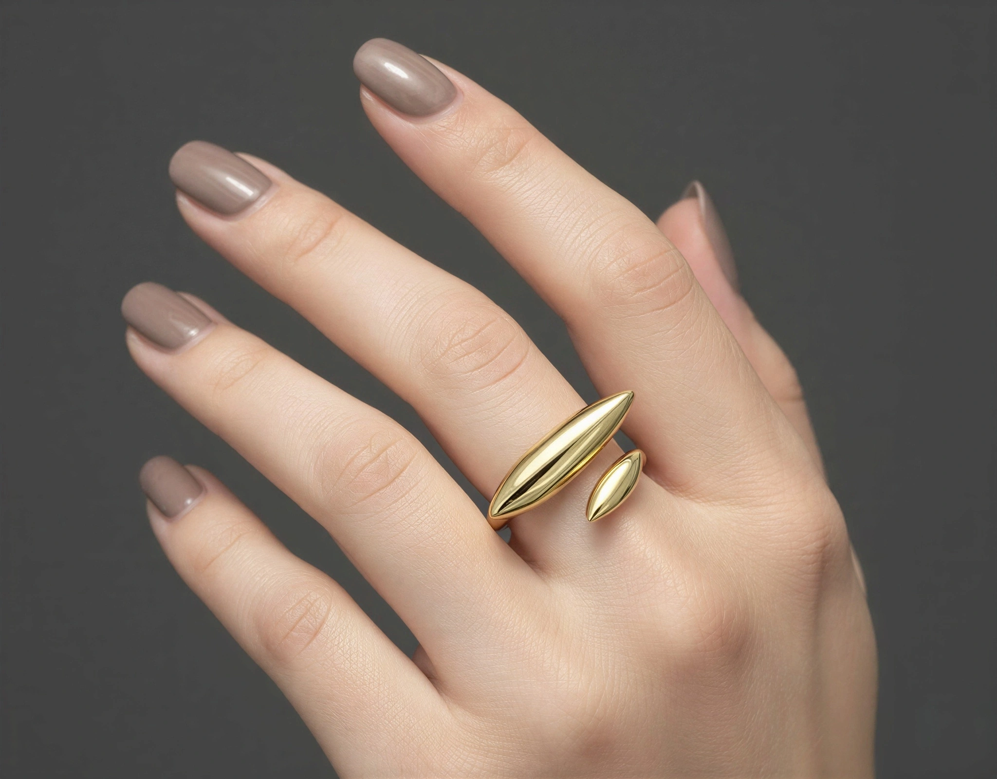 Çift Oval Gold Altın Kaplama Ayarlanabilir Yüzük