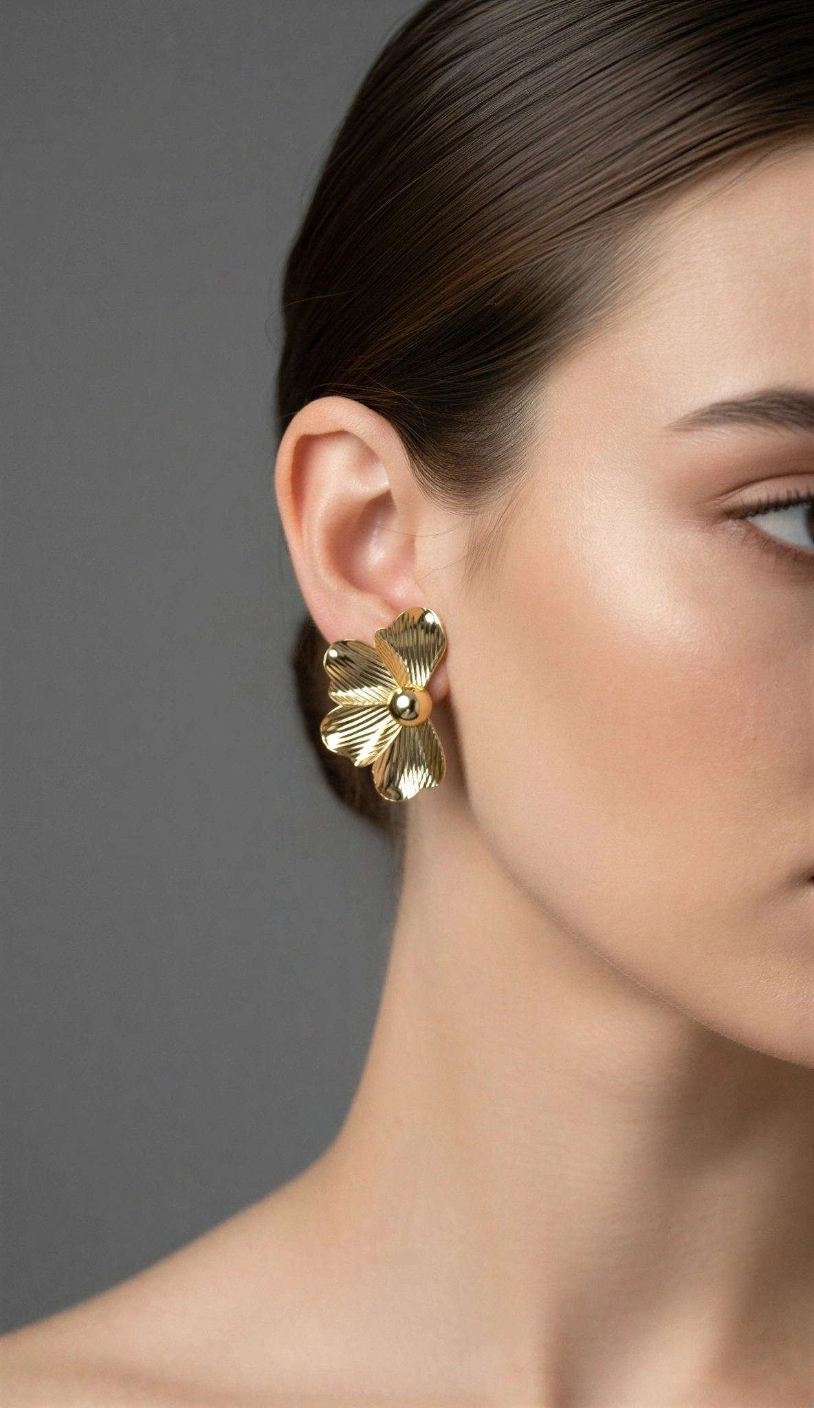 Yarım Çiçek Model Çizgi Detay Gold Altın Kaplama Küpe