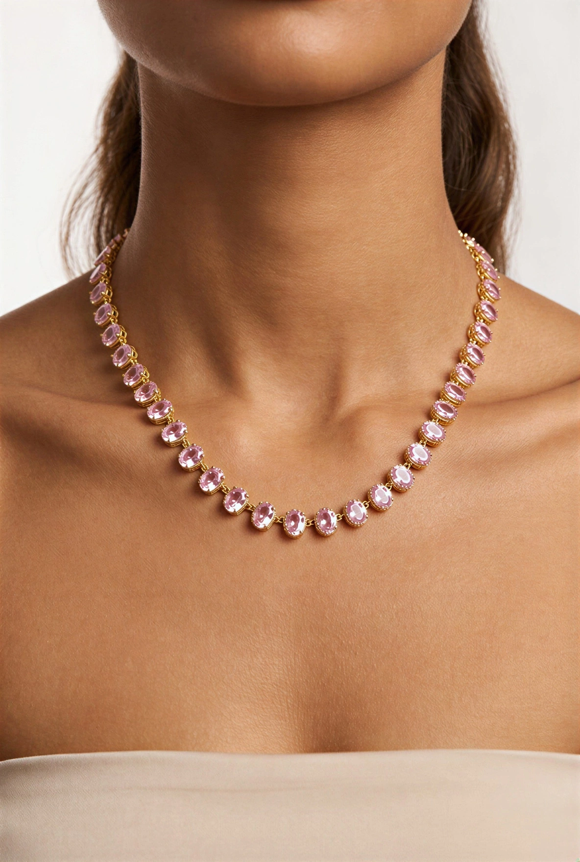 Oval Pembe Taş Detay Gold Altın Kaplama Kolye