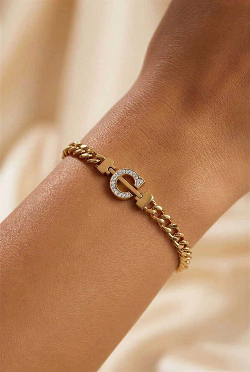 C Harf Oval Zincir Altın Kaplama Bileklik