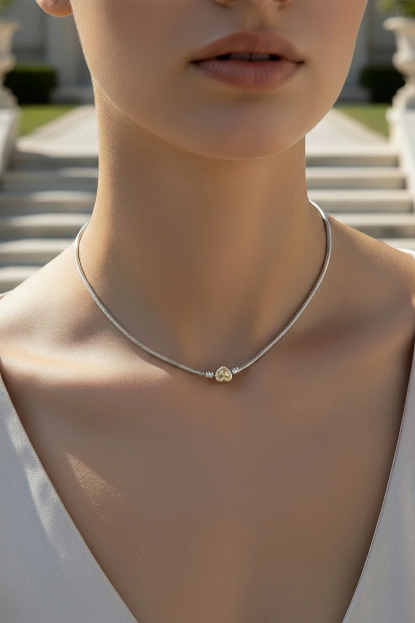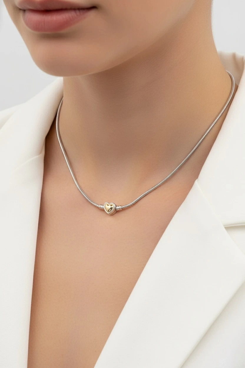 P. Model Renkli Kalp Beyaz Altın Kaplama Kolye