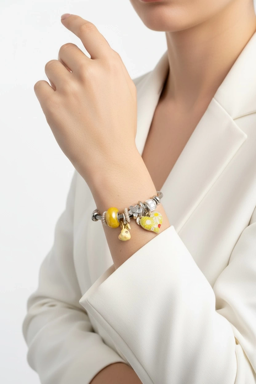P. Model Sarı Tavşan Beyaz Altın Kaplama Bileklik