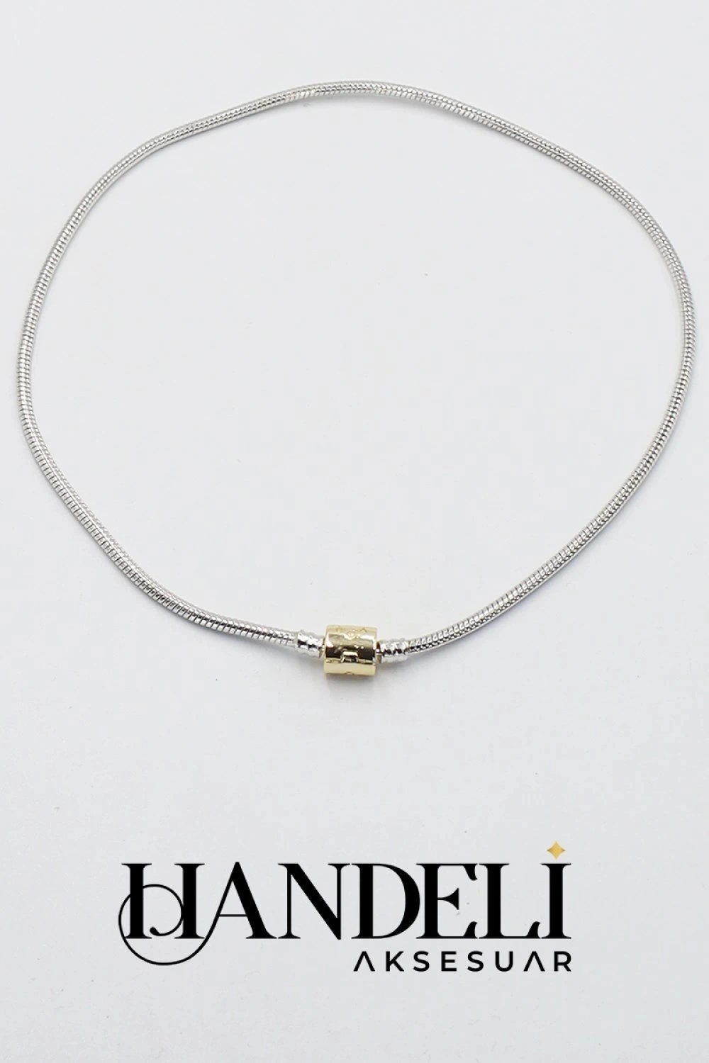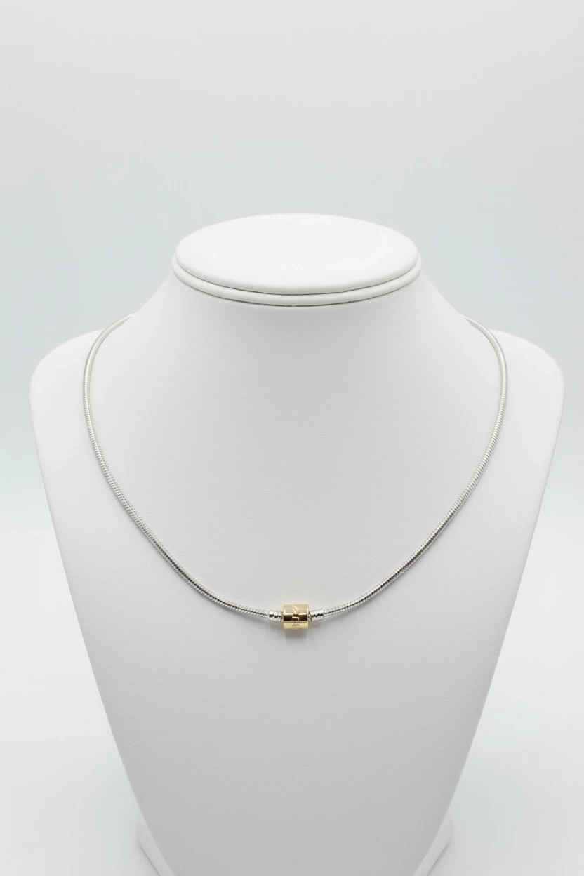 P. Model Silindir Detay Beyaz Altın Kaplama Çelik Kolye