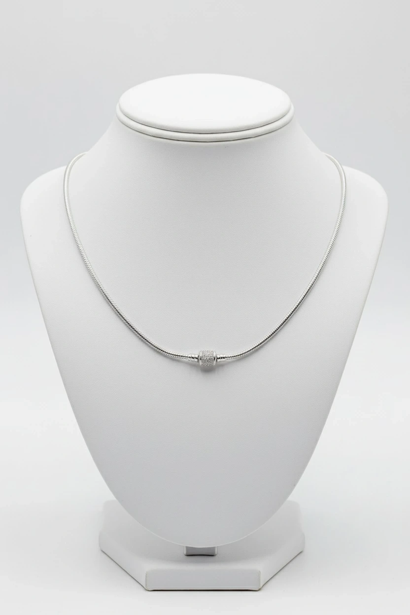 P. Model Silindir Taşlı Detay Beyaz Altın Kaplama Çelik Kolye