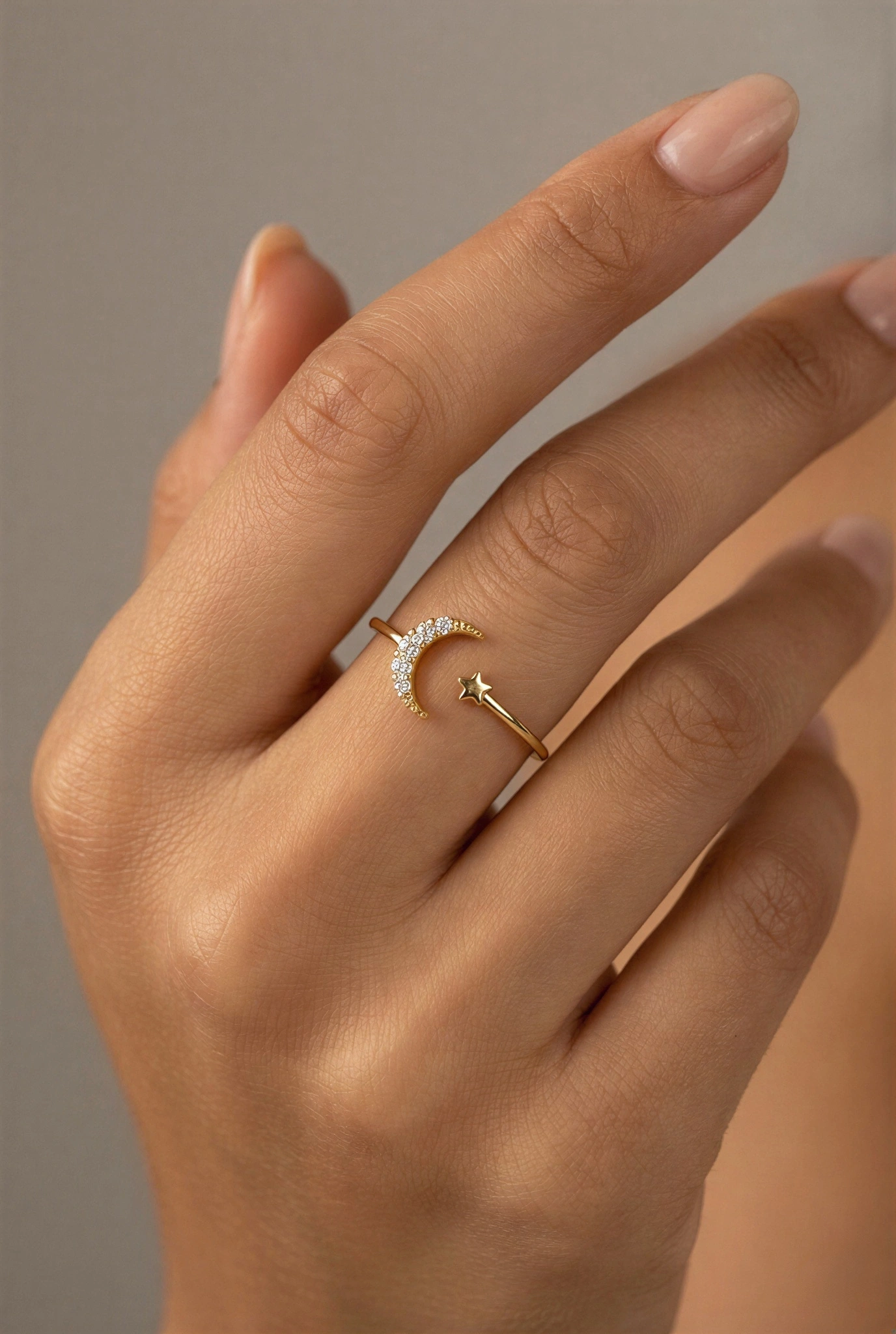 Ay Yıldız Model Taş Detay Gold Altın Kaplama Yüzük