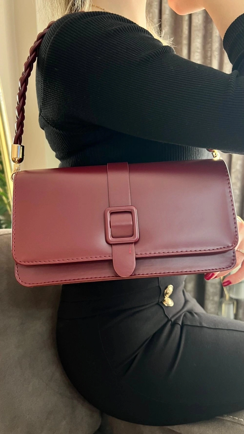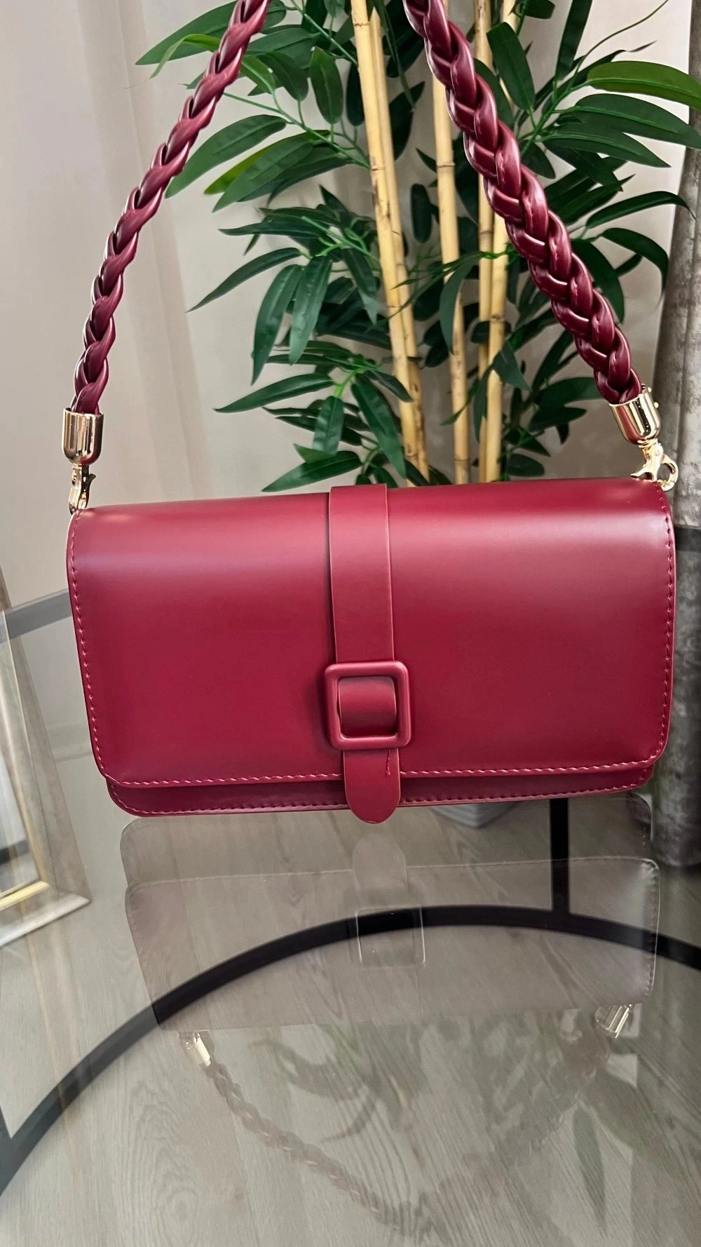 Paris Model Bordo Rengi Deri Kol Çantası