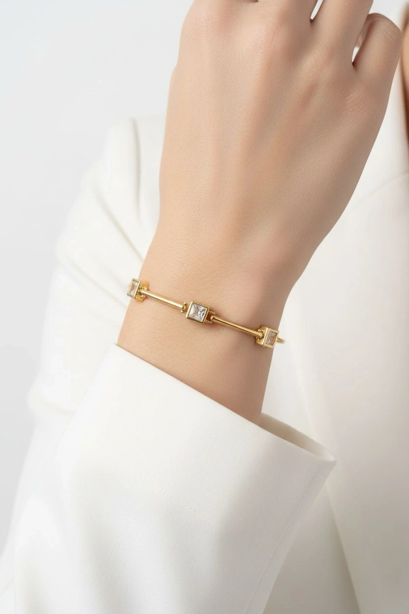 Cam Kare Geçişli Gold Altın Kaplama Bileklik