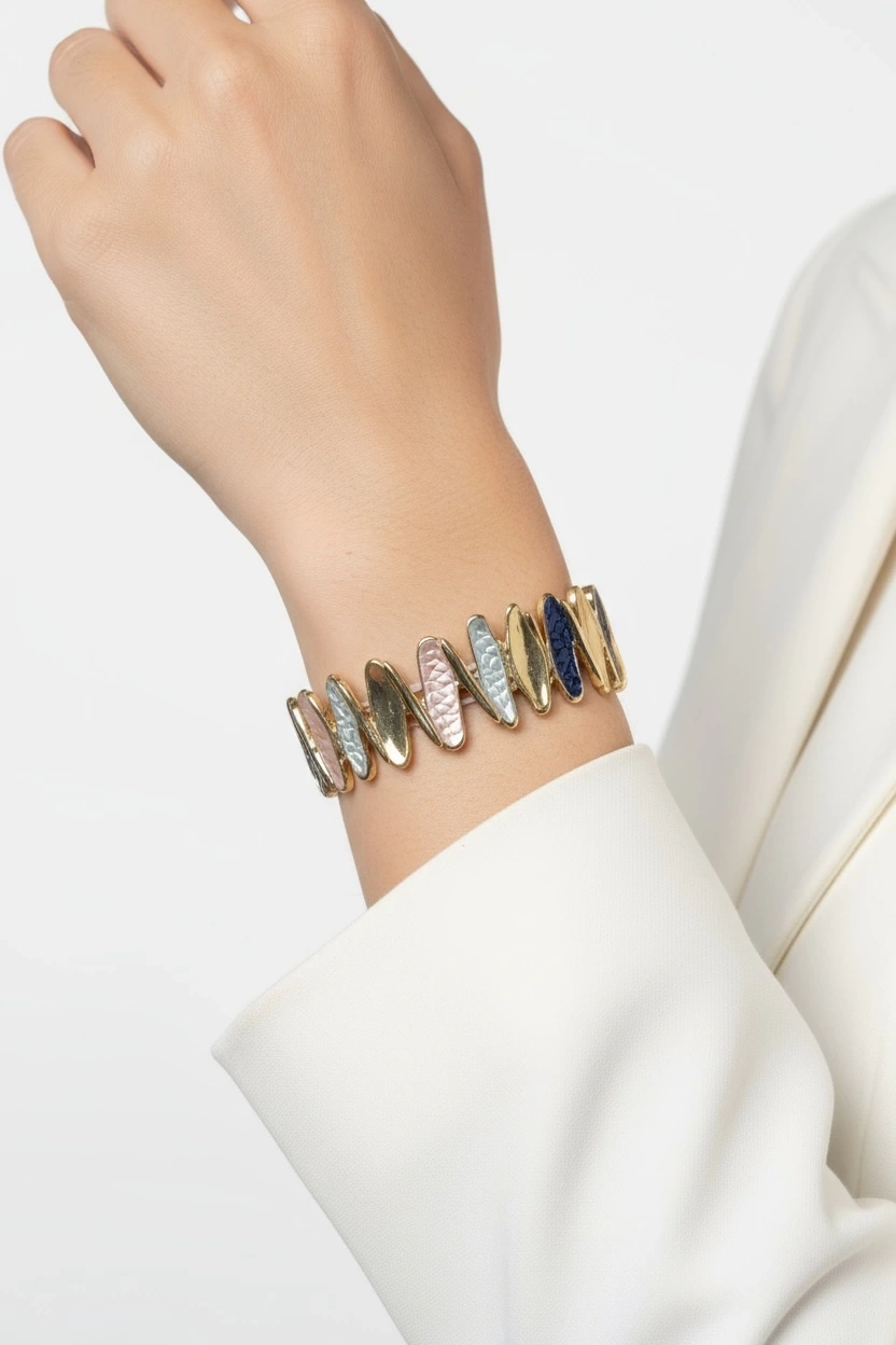 Pembe Mavi Renk Fildişi Desenli Model Kelepçe Bileklik