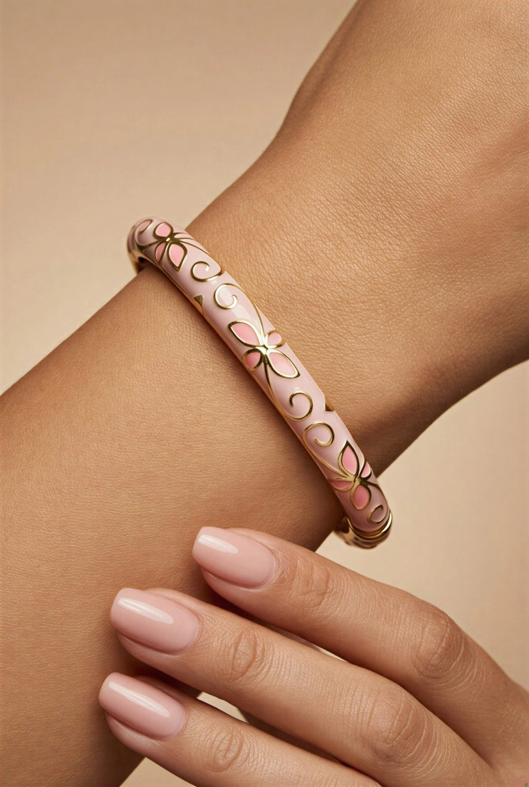 Bu şık bileklik, zarif tasarımı ve pembe renk minesi ile öne çıkıyor. Altın kaplamasıyla göz alıcı bir görünüm sunan bu bileklik, her tarza ve her kombinasyona kolaylıkla uyum sağlıyor.