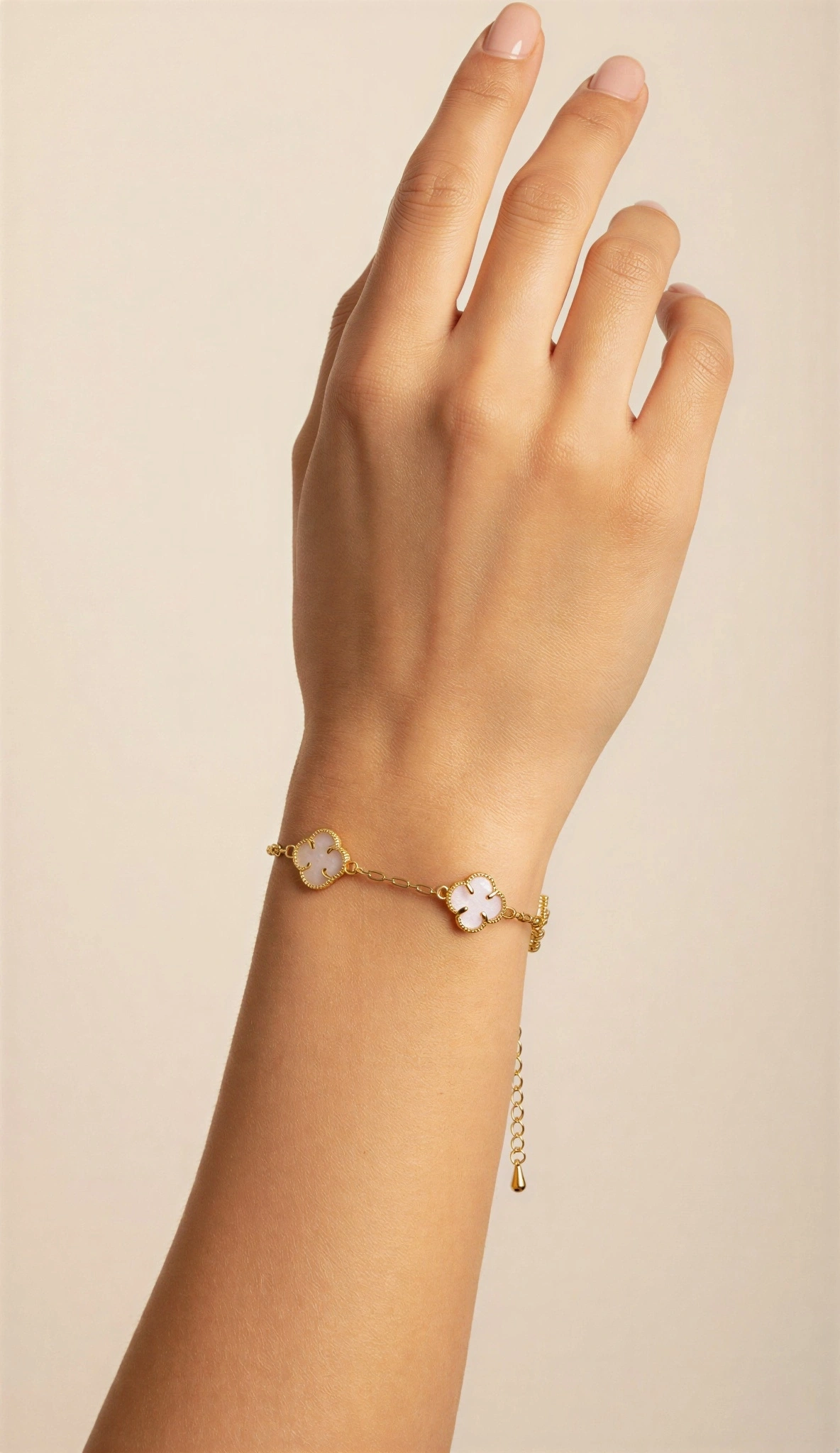 Beyaz Renk Yonca Detay Gold Altın Kaplama Bileklik