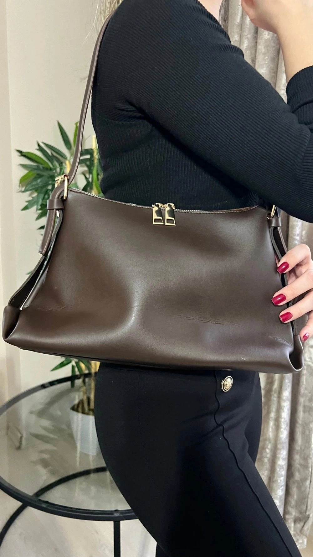 Point Model Acı Kahve Renk Deri Kol Çantası