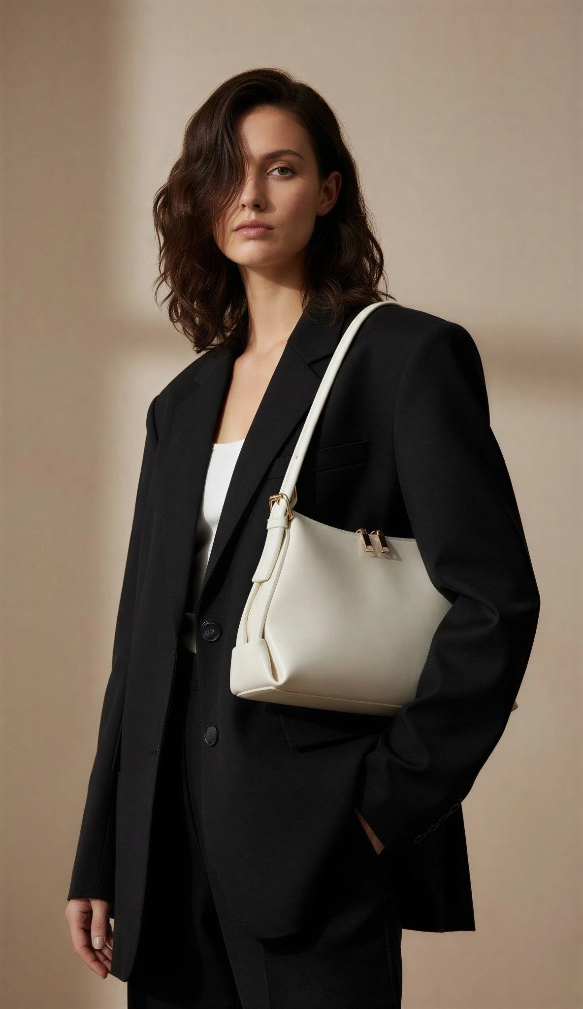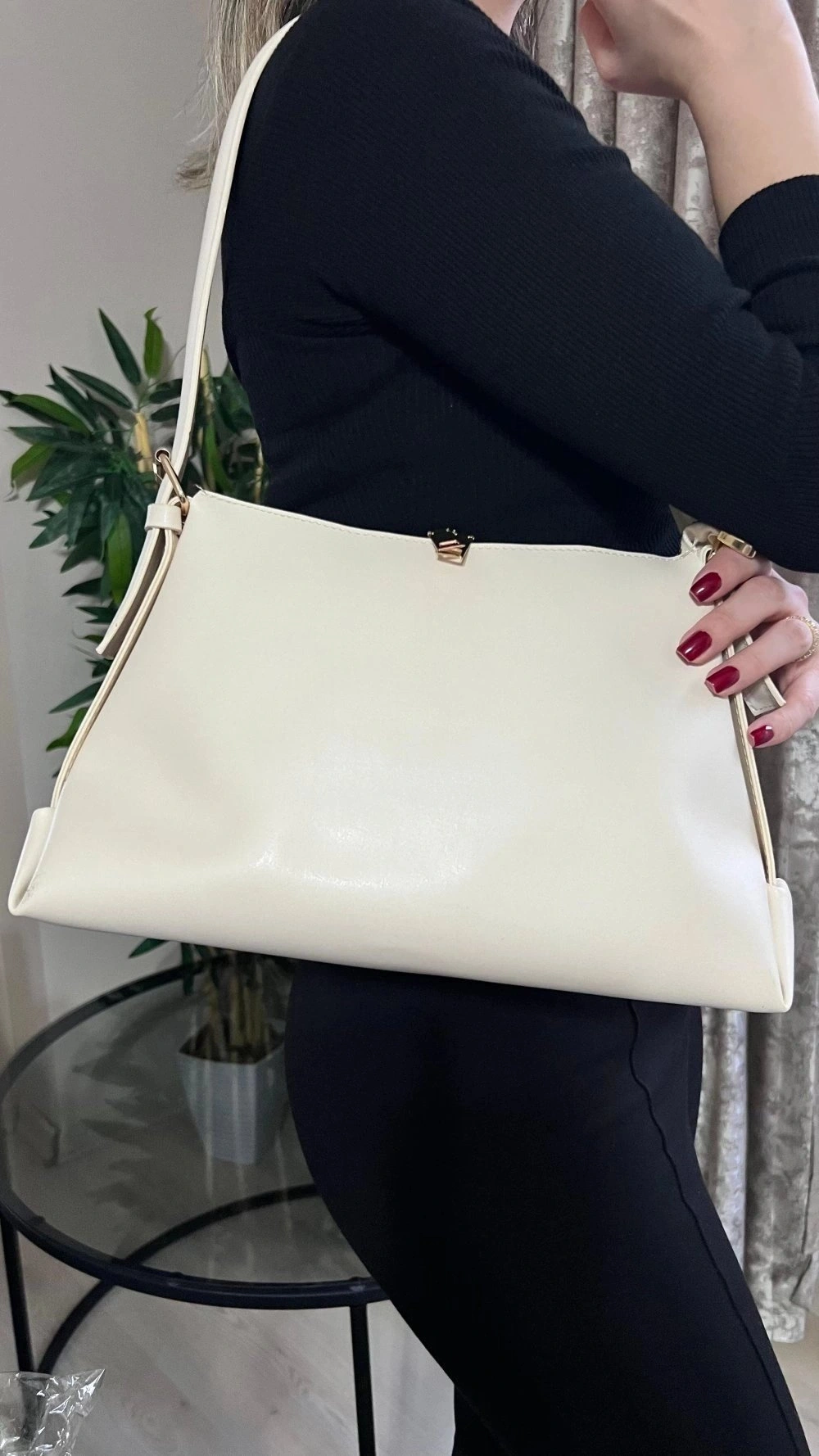 Point Model Beyaz Renk Deri Kol Çantası