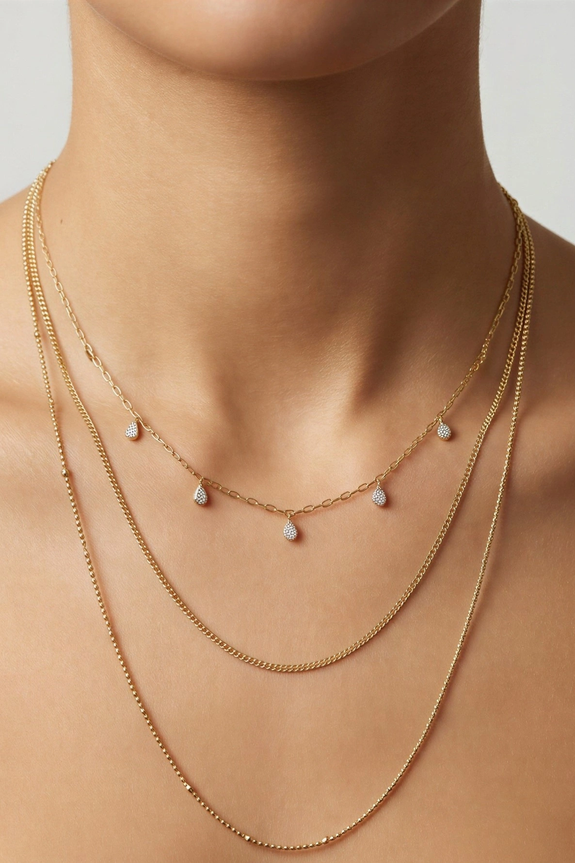 Sıralı Damla Model Gold Altın Kaplama Üçlü Kolye