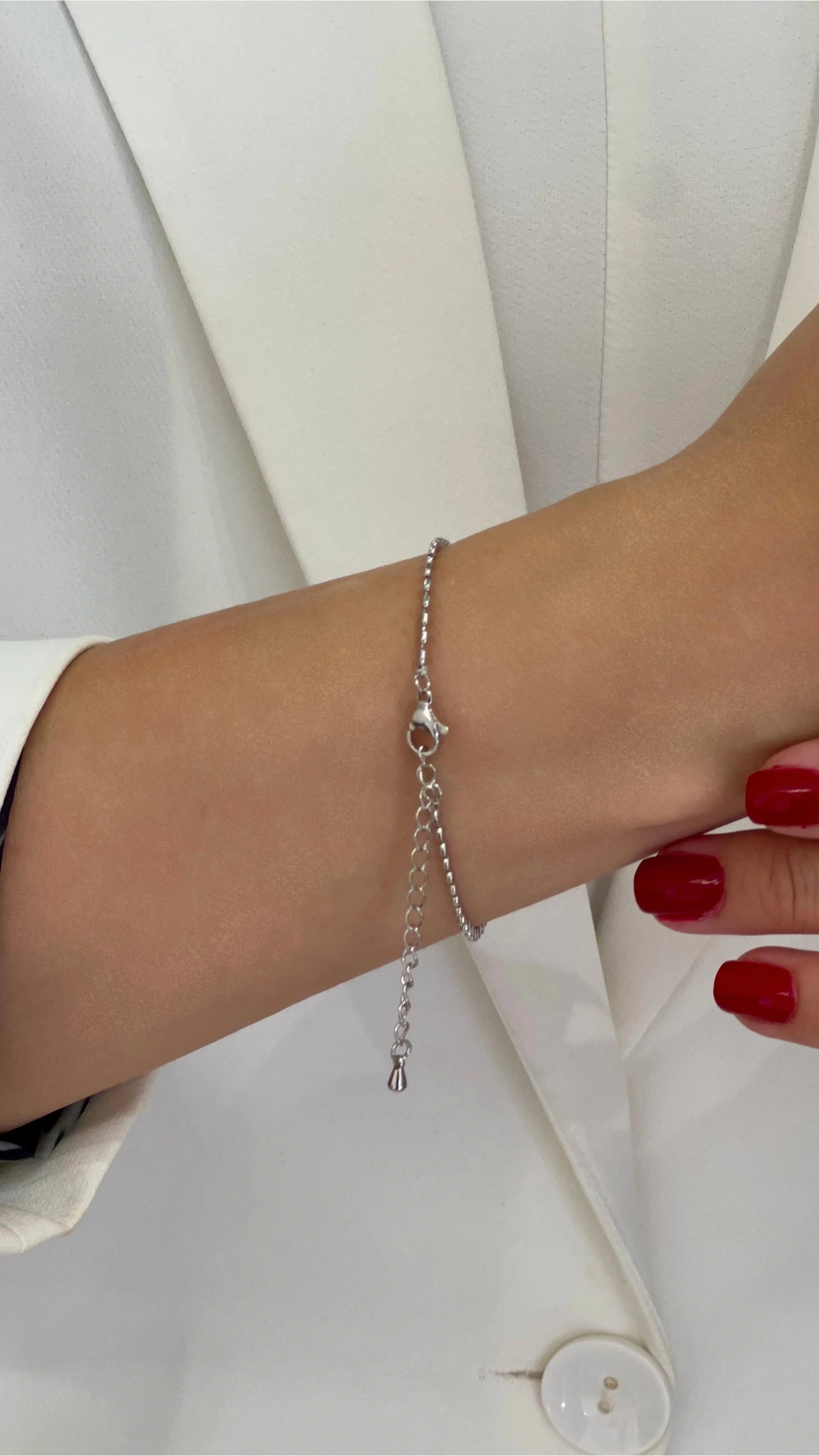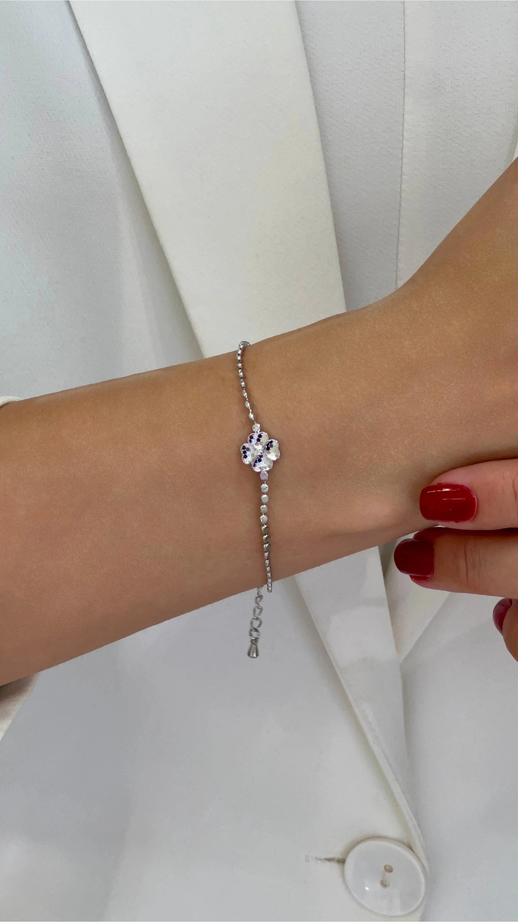 Pul Zincir Yonca Detay Beyaz Altın Kaplama Bileklik