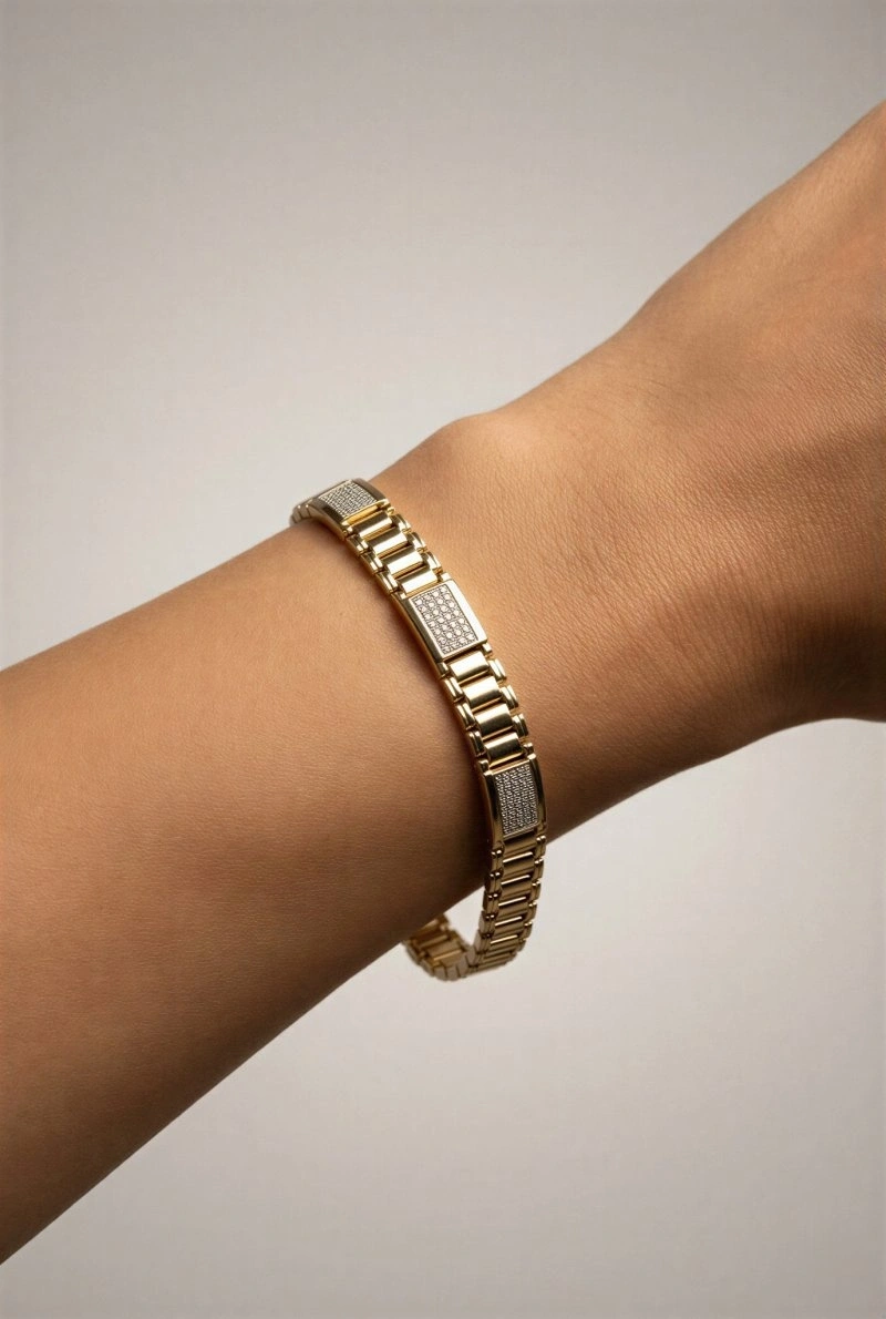 Ray Model Taş Detaylı Gold Altın Kaplama Bileklik
