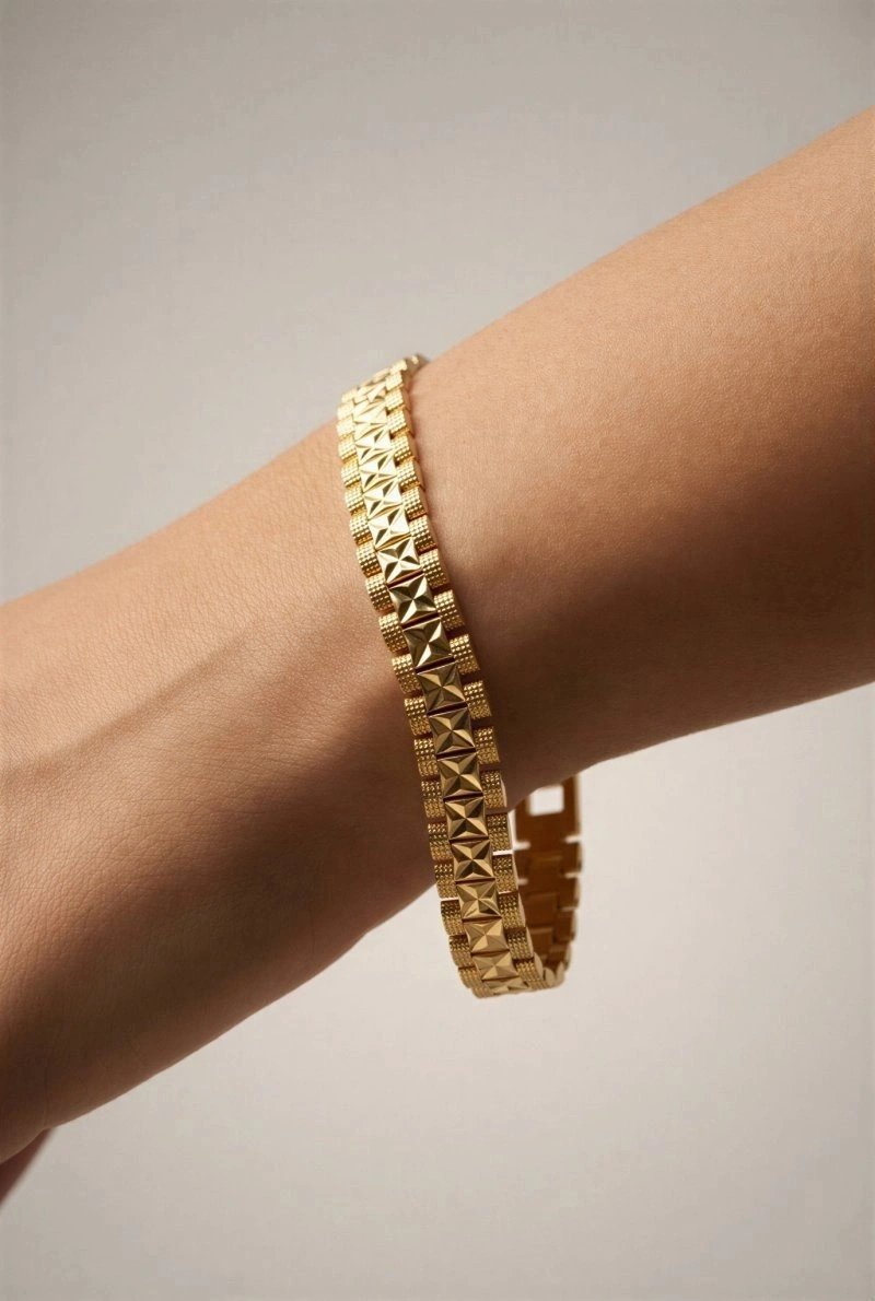 Rekson Model Çarpı Detay Gold Altın Kaplama Kuyumcu Bileklik