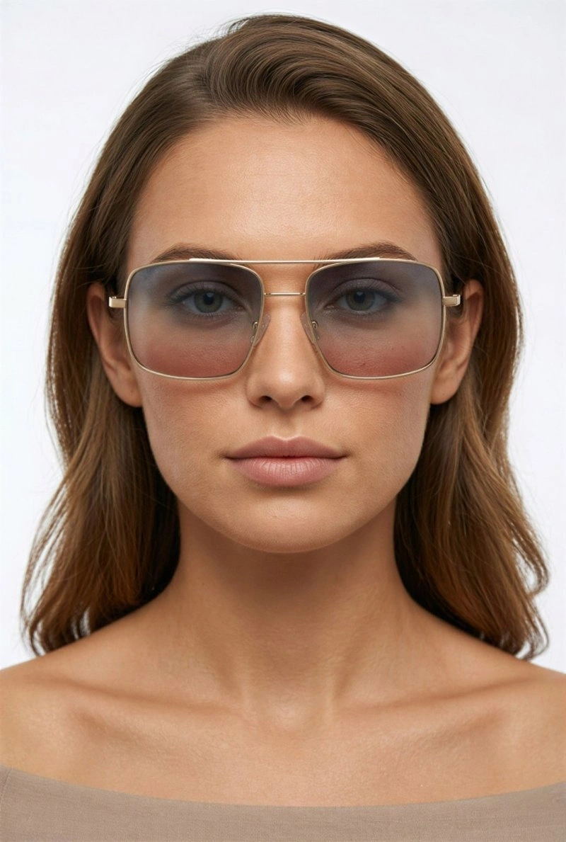 Renkli Cam Gold Kadın Güneş Gözlüğü