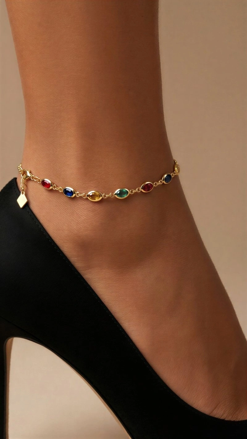 Renkli Cam Model Gold Altın Kaplama Halhal
