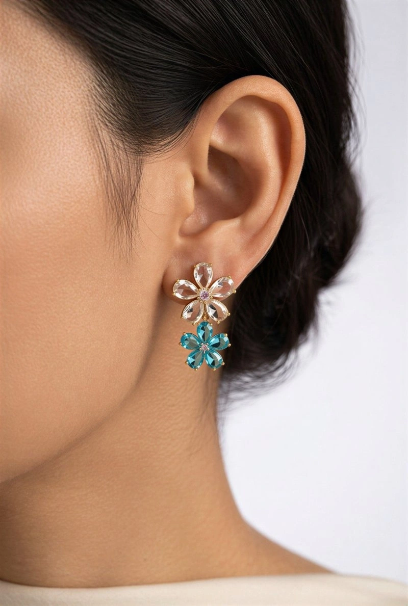 Renkli Çiçek Gold Altın Kaplama Küpe