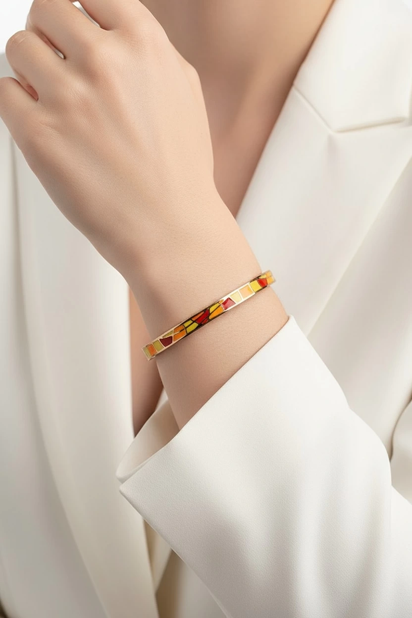Renkli Düz Turuncu Detay Gold Altın Kaplama Bileklik