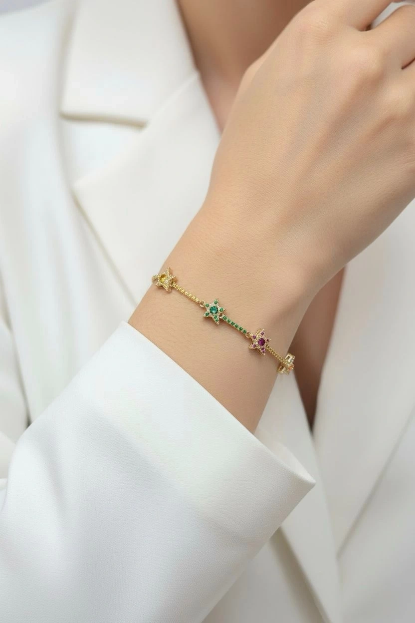 Renkli Yıldız Detay Gold Altın Kaplama Bileklik