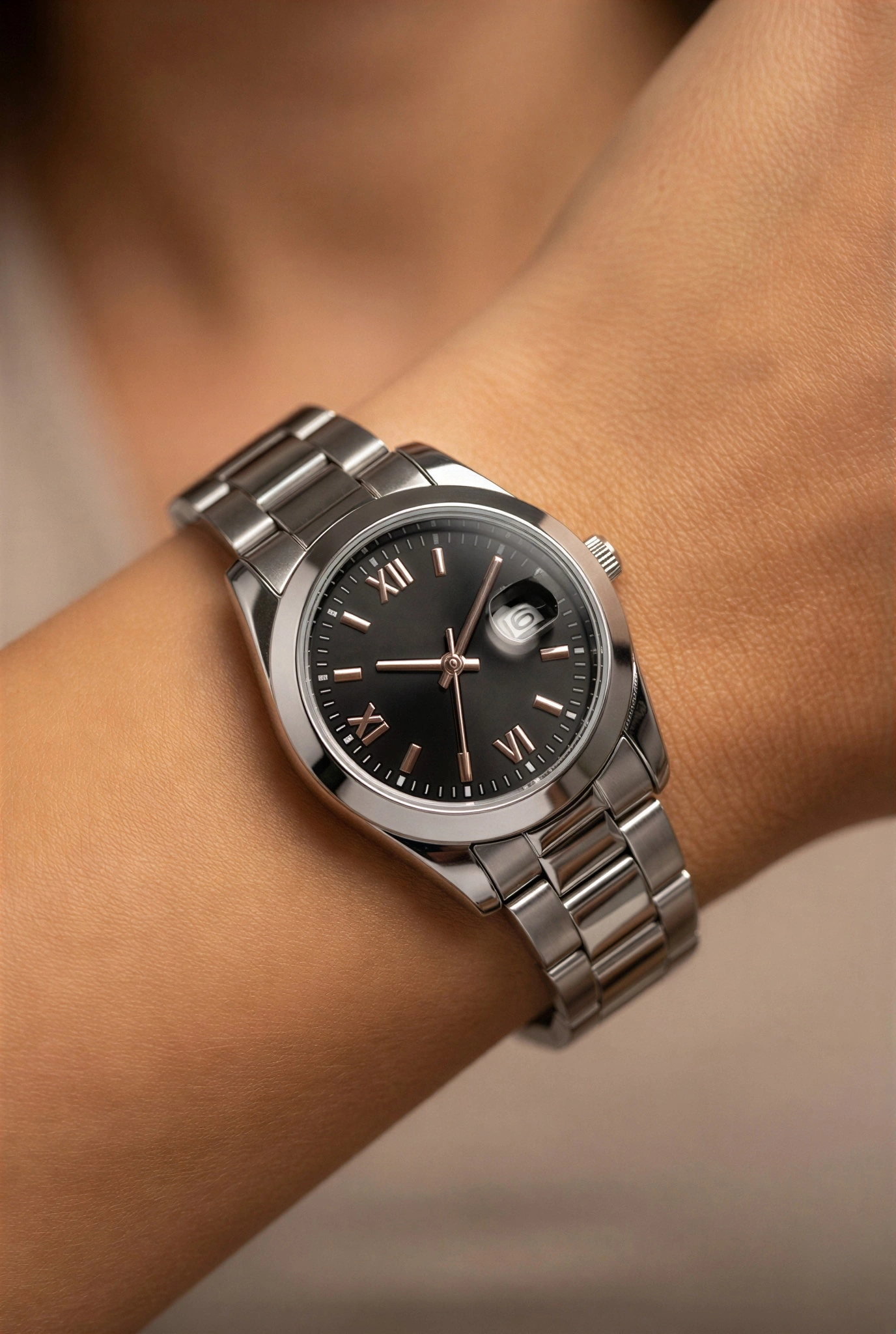 Roma Rakam Model Beyaz İçi Siyah Kadın Kol Saati