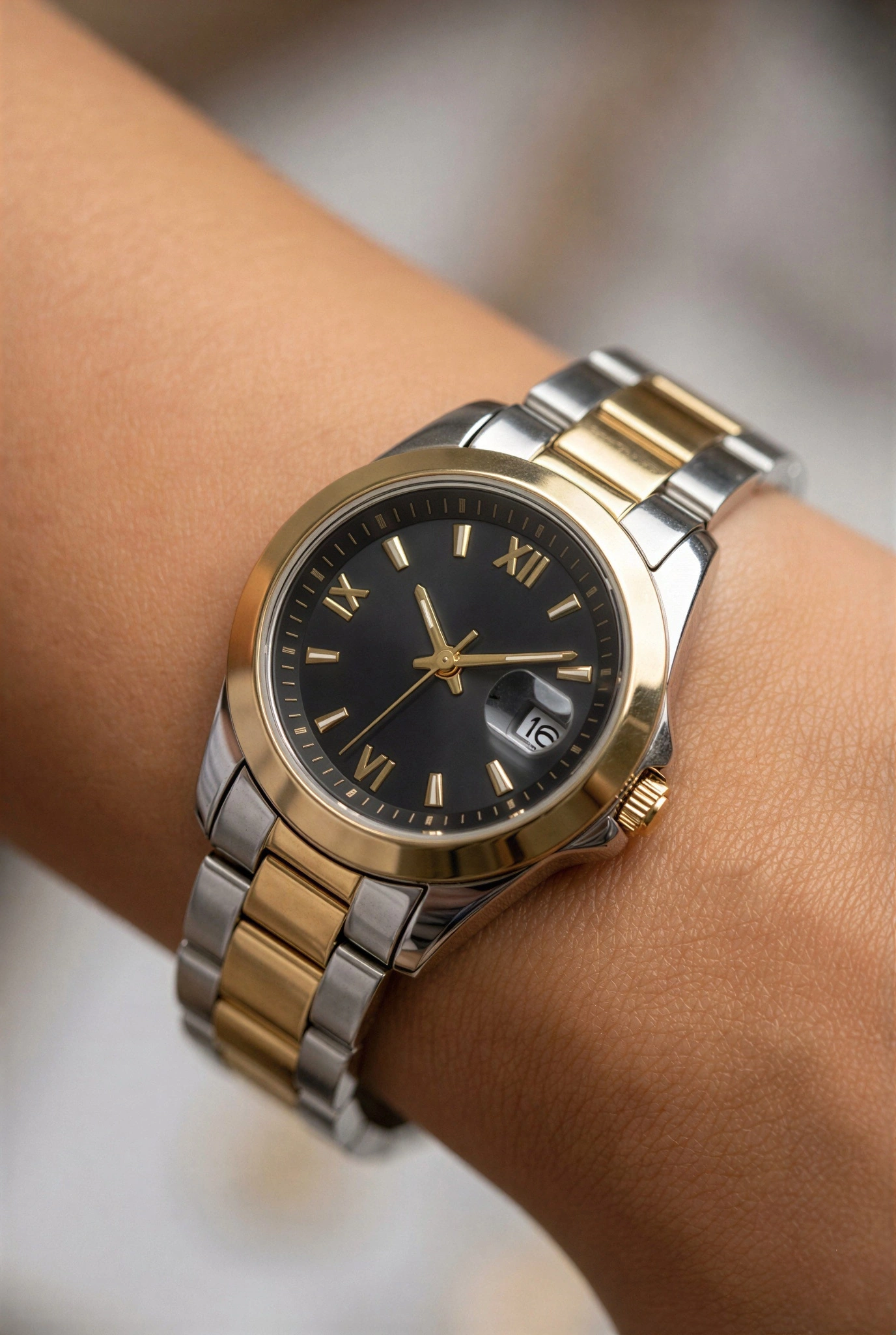 Roma Rakam Model Gold Gümüş İçi Siyah Kadın Kol Saati