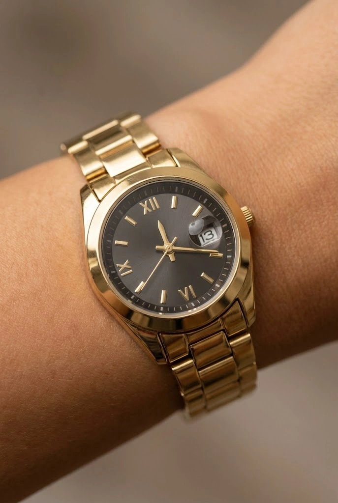 Roma Rakam Model Gold İçi Siyah Kadın Kol Saati