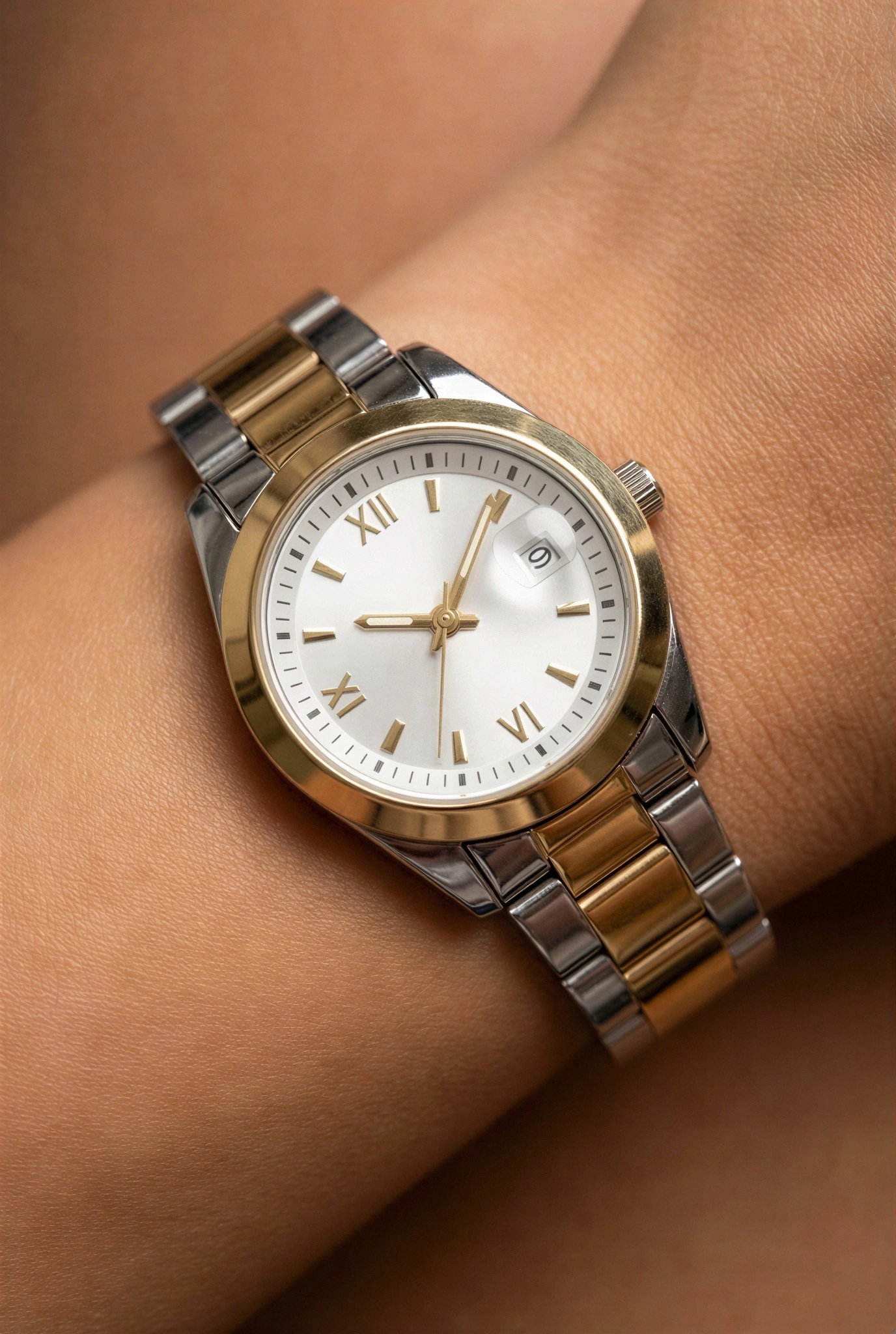 Roma Rakam Model Gold Gümüş İçi Beyaz Kadın Kol Saati