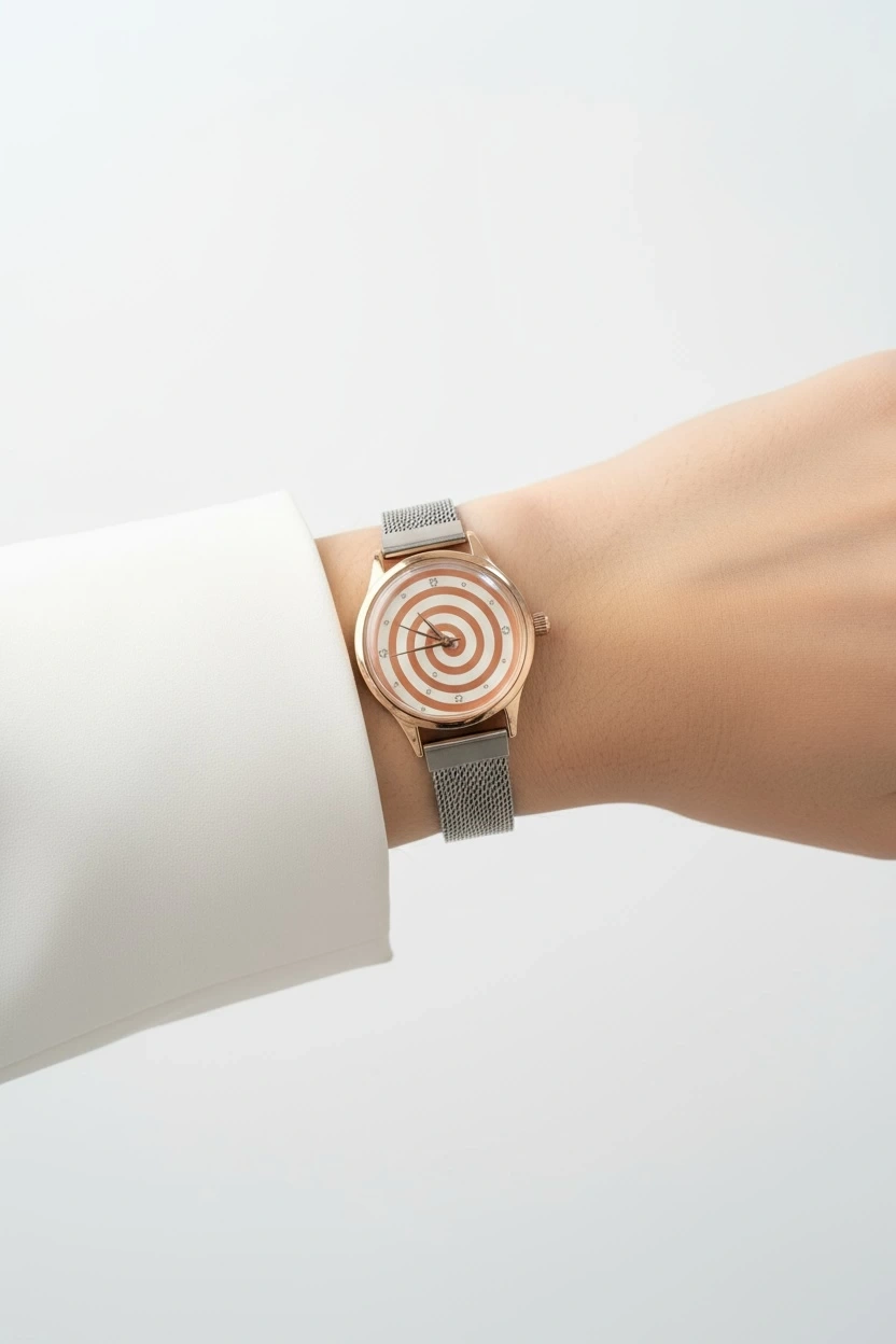 Beyaz Hasır Kordon Sarmal Rose Kadran Detay Kadın Kol Saati