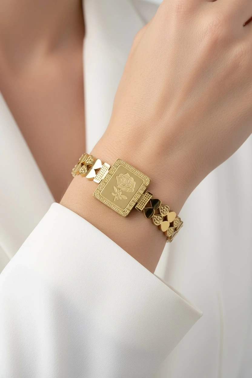 Rose Serisi Kalp Detay Gold Altın Kaplama Bileklik