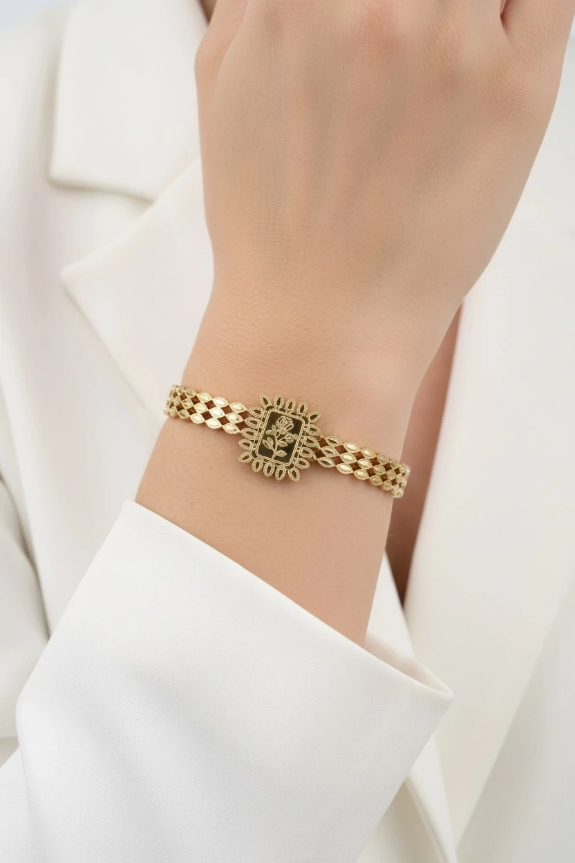 Rose Serisi Oval Detay Gold Altın Kaplama Bileklik