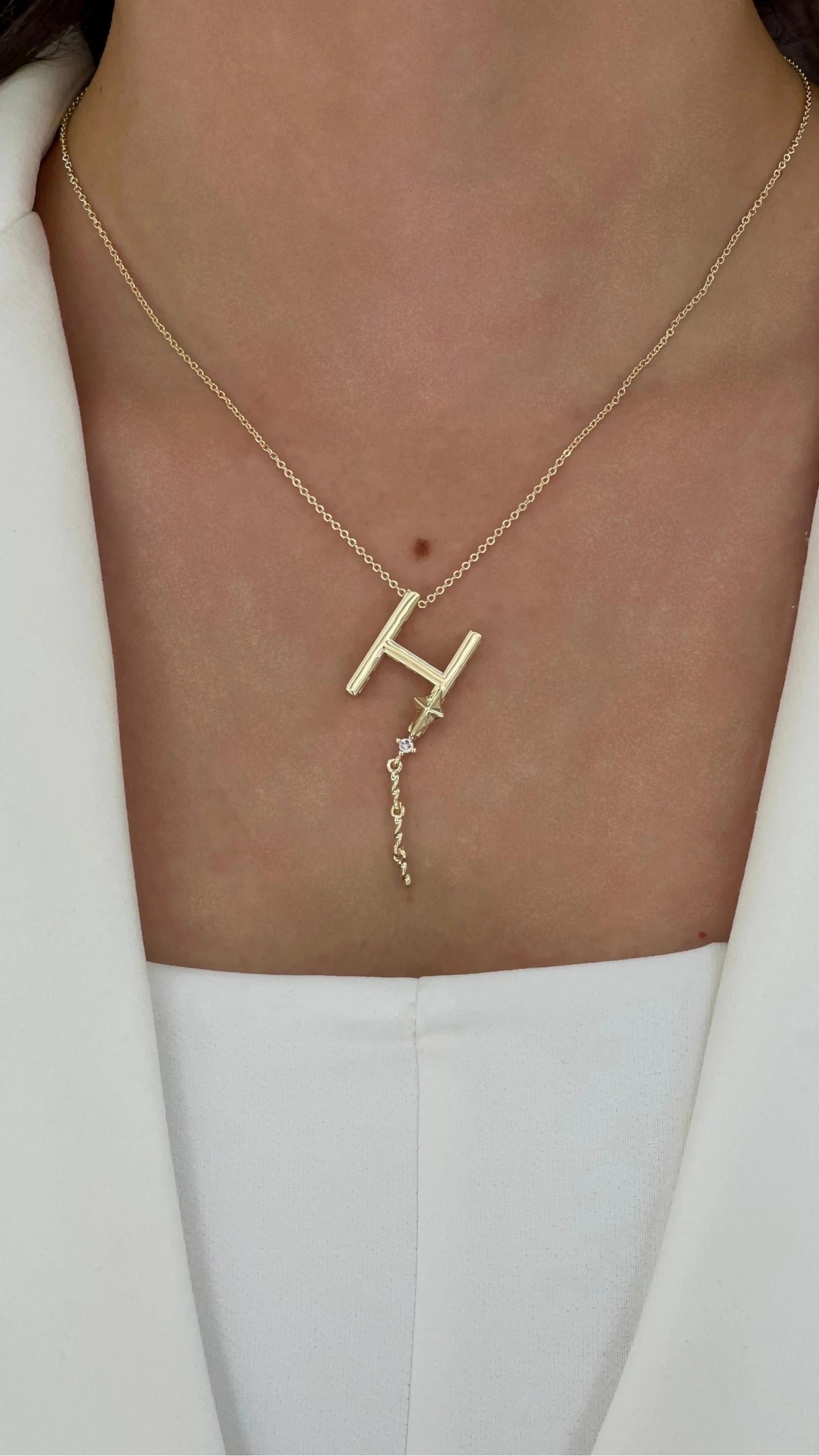 Sallantı Model H Harf Detay Gold Altın Kaplama Kolye
