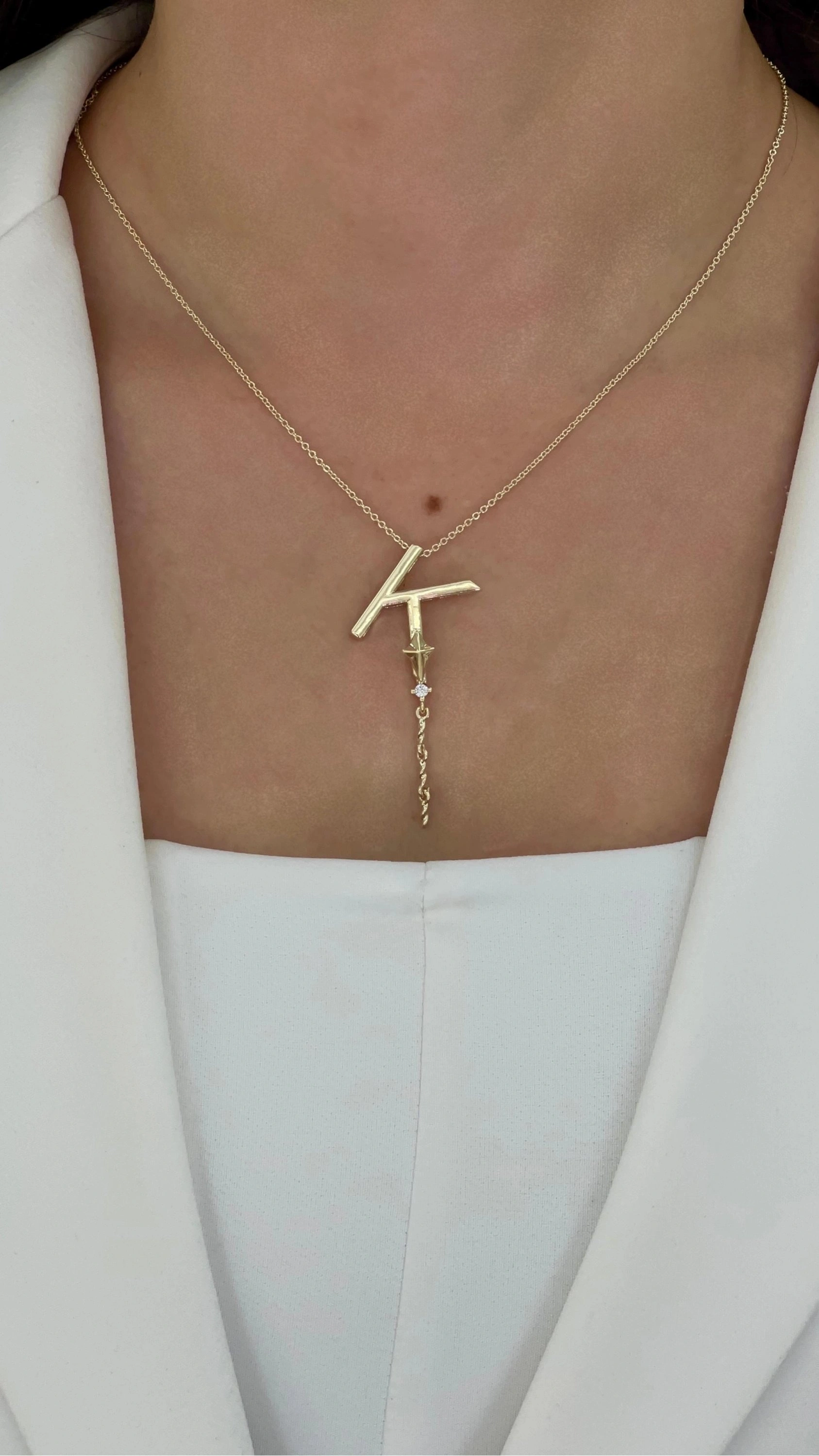 Sallantı Model K Harf Detay Gold Altın Kaplama Kolye