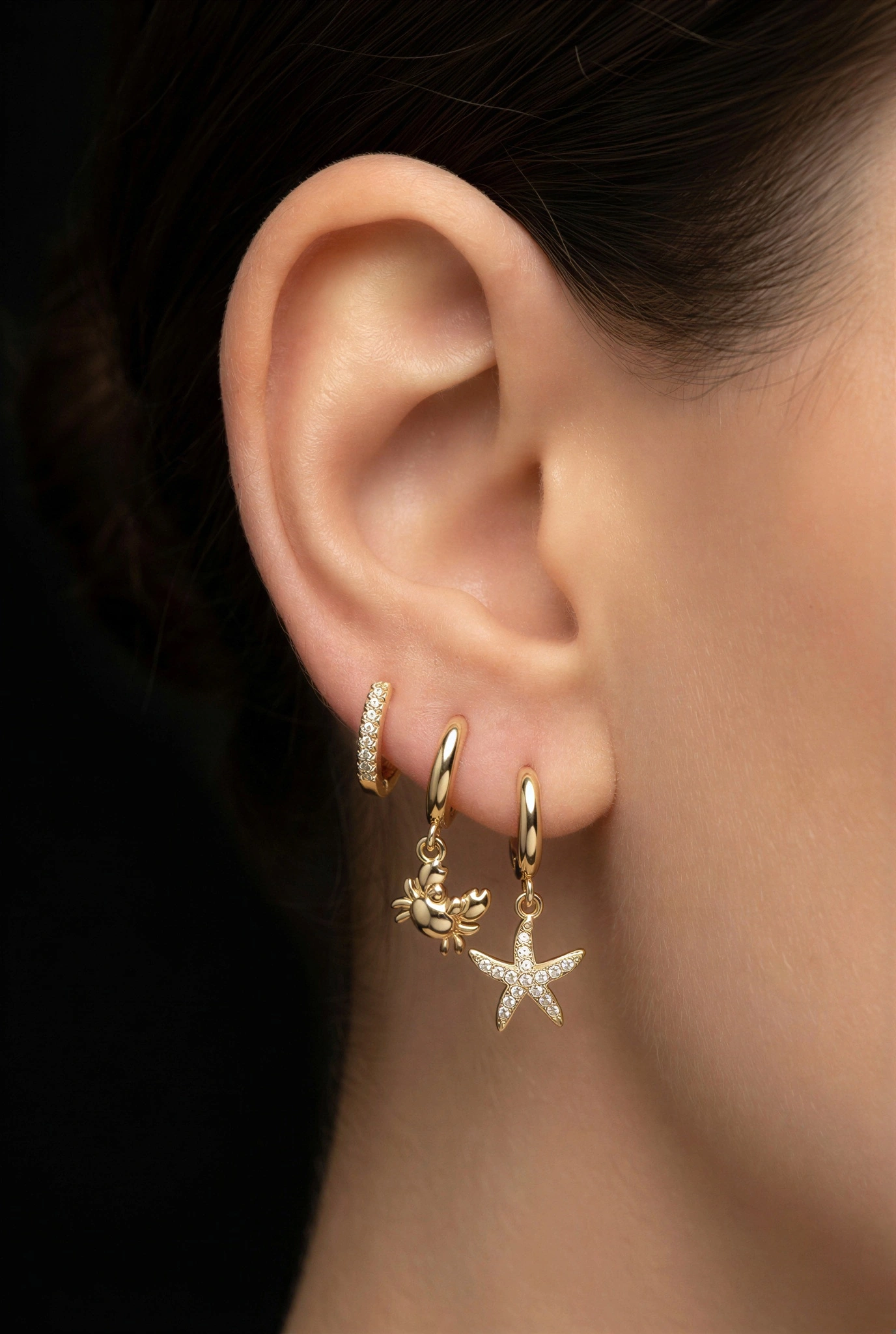 Yengeç Model Gold Altın Kaplama Üçlü Küpe