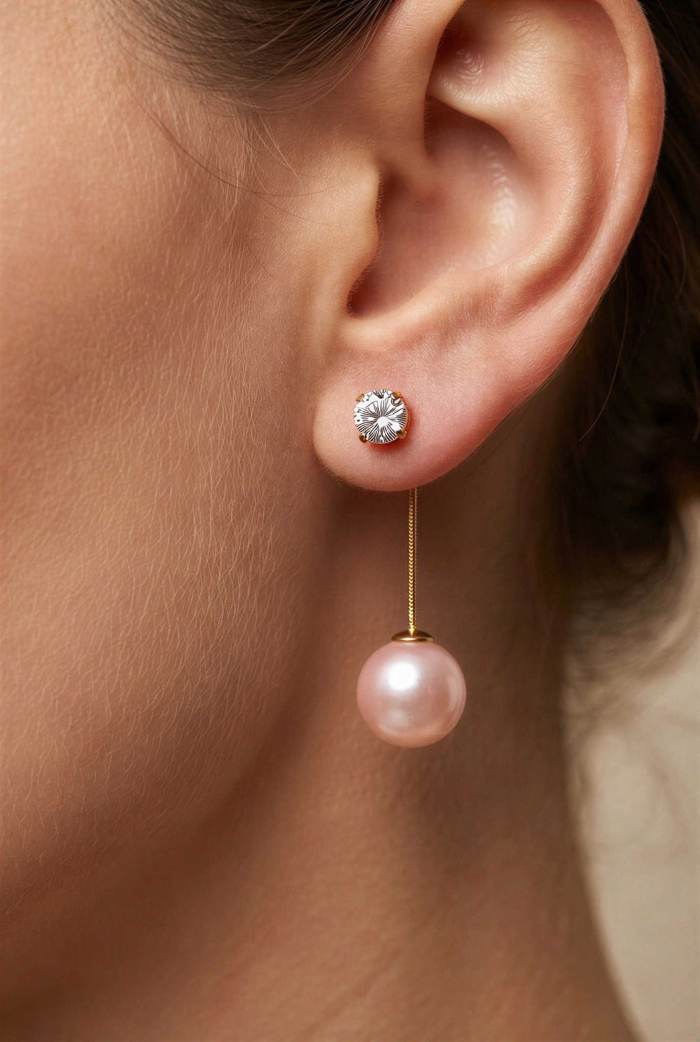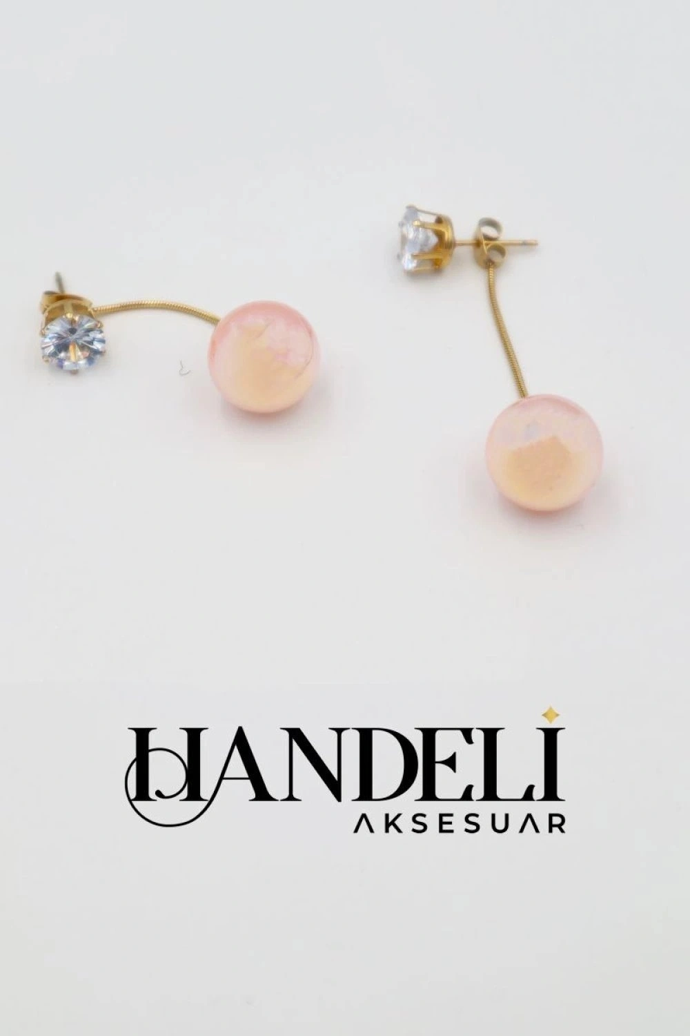 Sallantılı Sedef Pembe Pırlanta Detay Gold Altın Kaplama Küpe