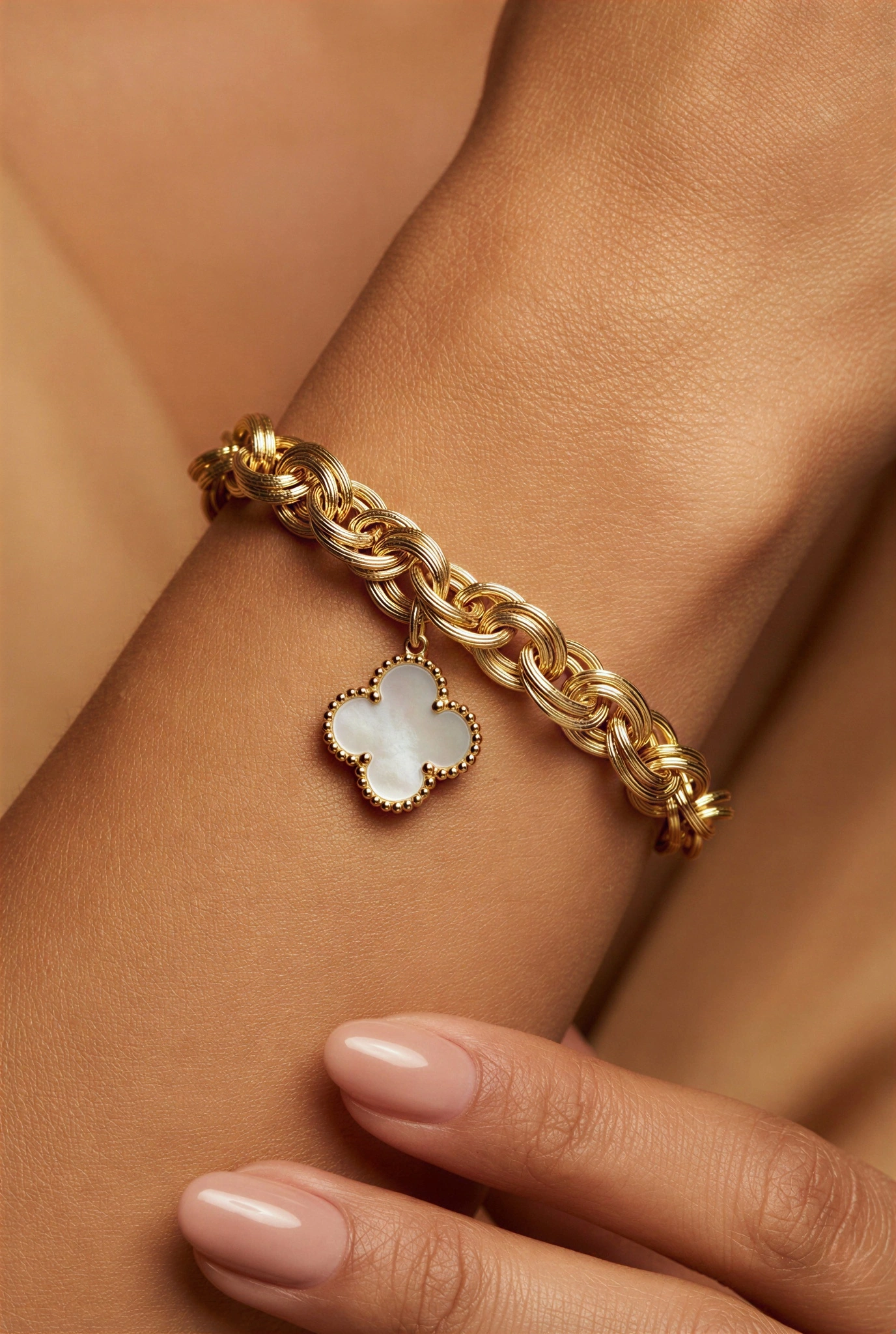 Sallantılı Sedef Yonca Model Gold Altın Kaplama Bileklik
