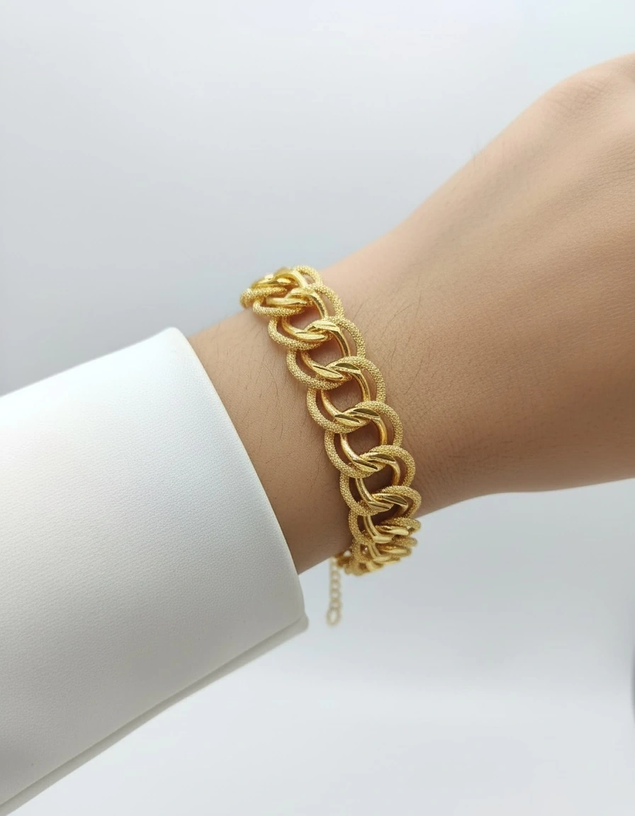 Samanyolu Detay İçi Düz Geçişli Gold Altın Kaplama Kuyum Bileklik