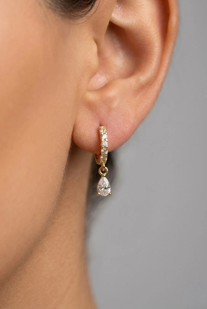 Sarkıt Damla Model Gold Altın Kaplama Küpe