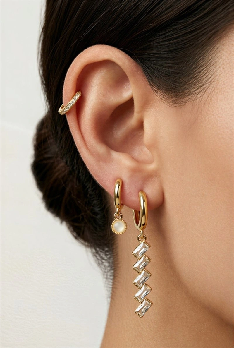 Sarkıt Model Gold Altın Kaplama Üçlü Küpe