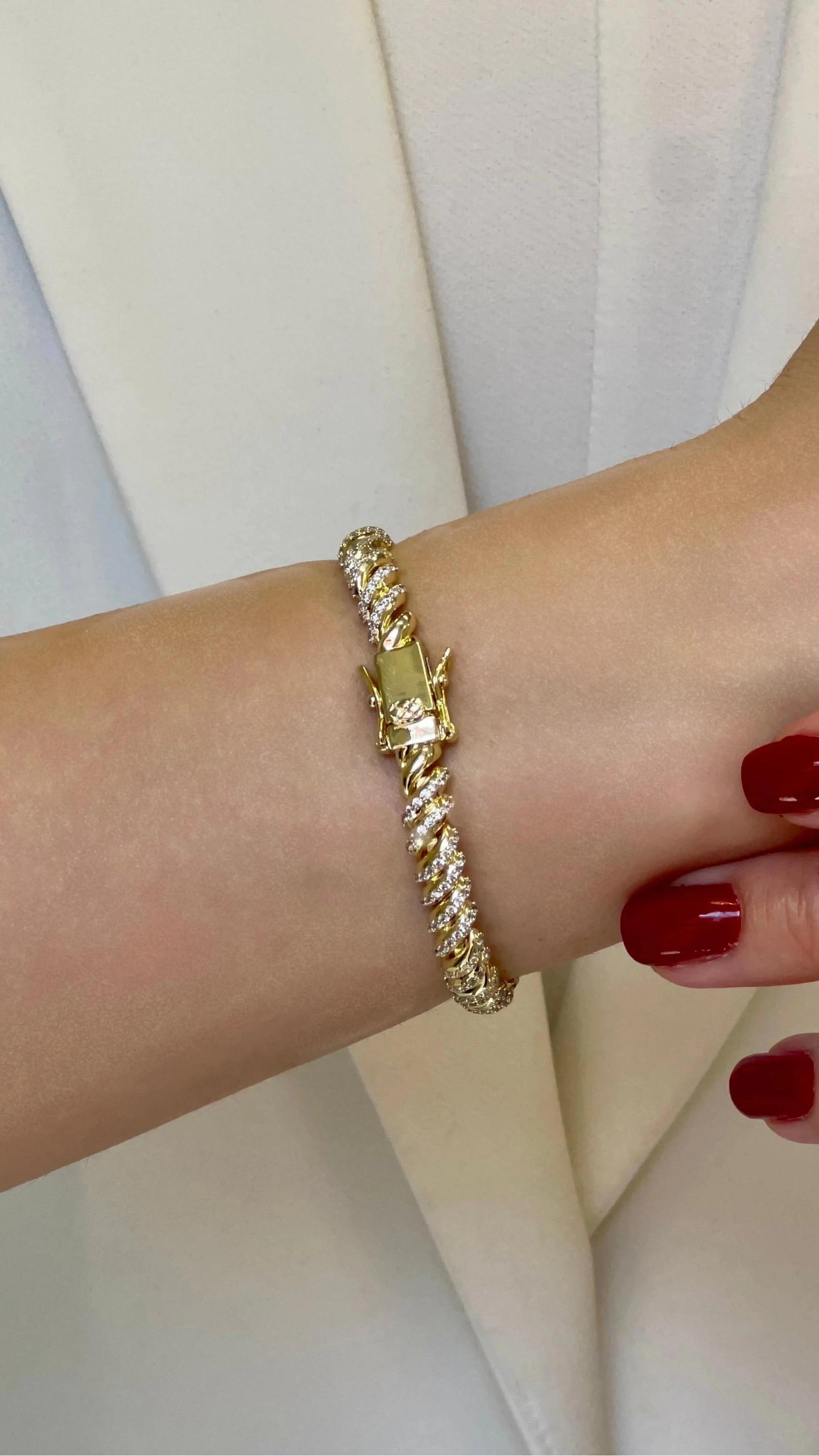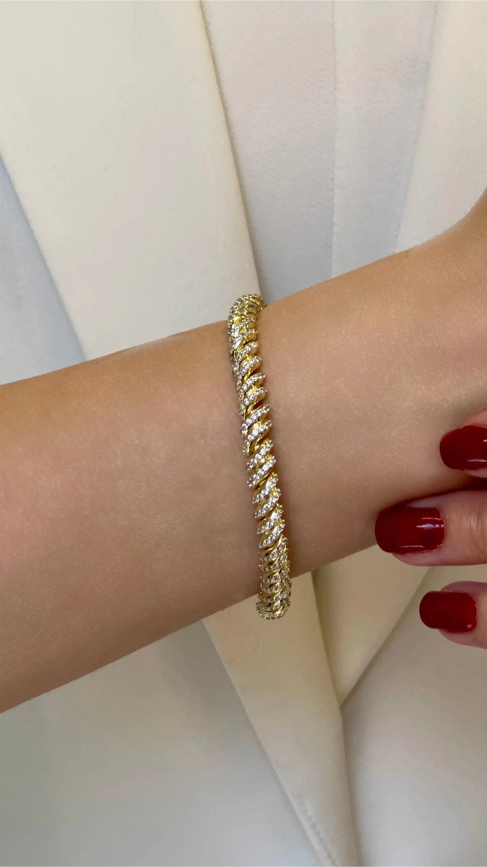 Sarmal Sıralı Yarı Taşlı Gold Altın Kaplama Bileklik
