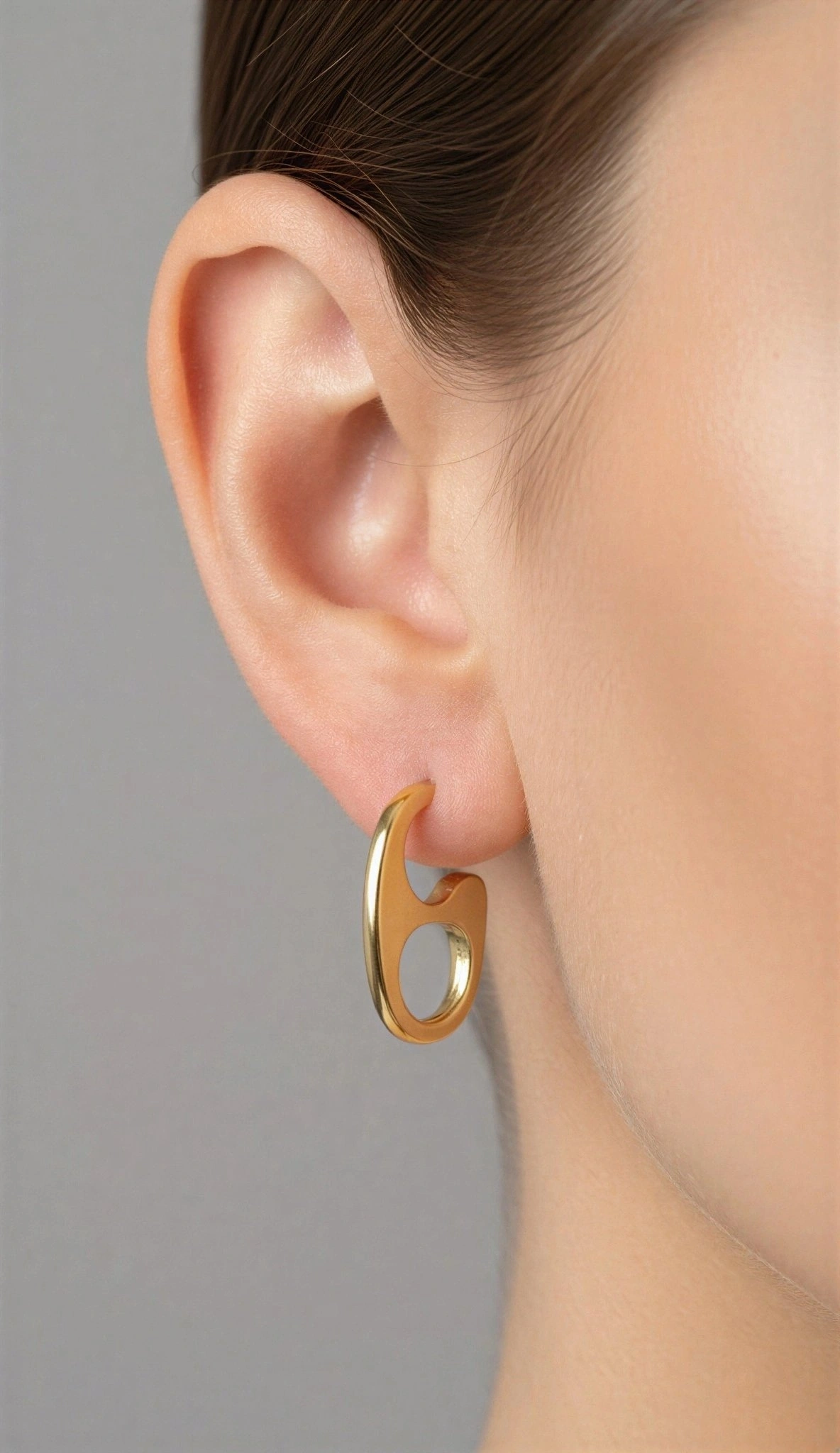 Delik Halka Model Gold Altın Kaplama Çelik Küpe