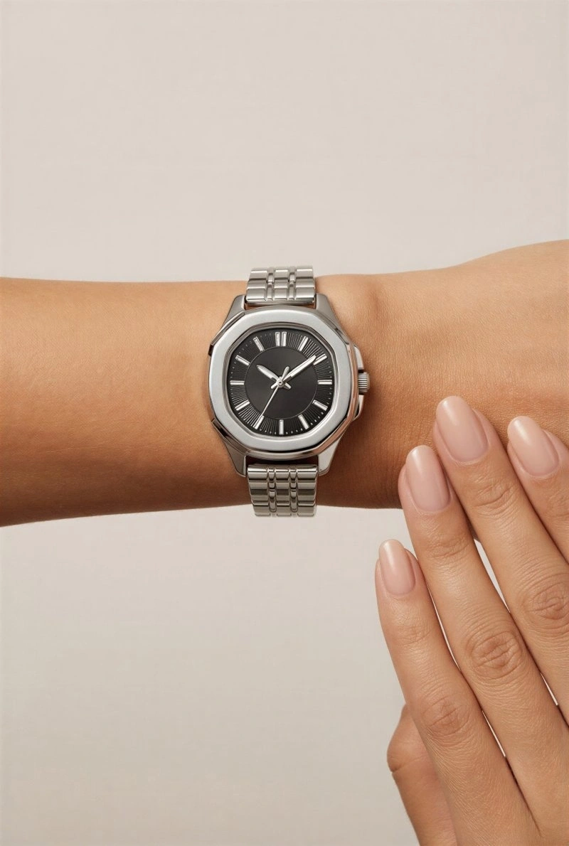 Sekizgen Model Beyaz İçi Siyah Kadın Kol Saati