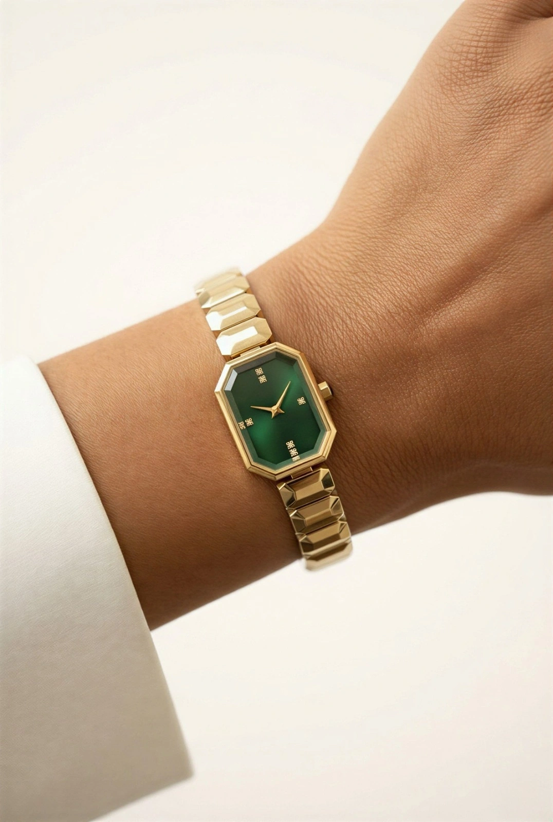 Sekizgen Model Gold Kordon Haki Kadran Kadın Kol Saati