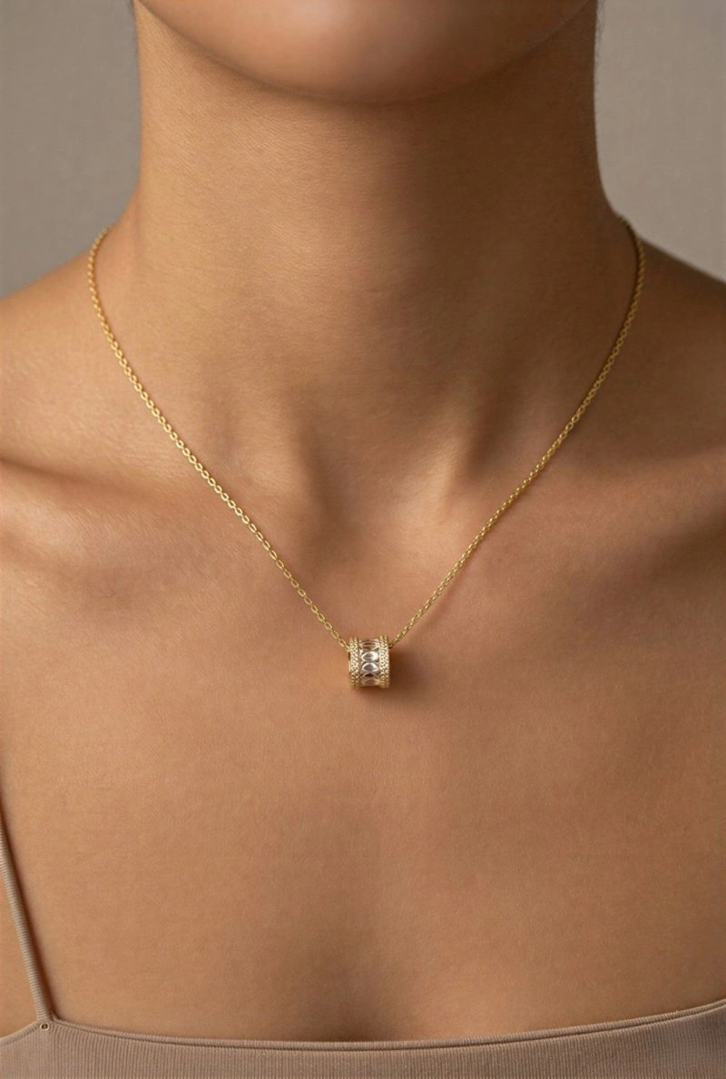 Silindir Model Zarif Gold Altın Kaplama Kolye