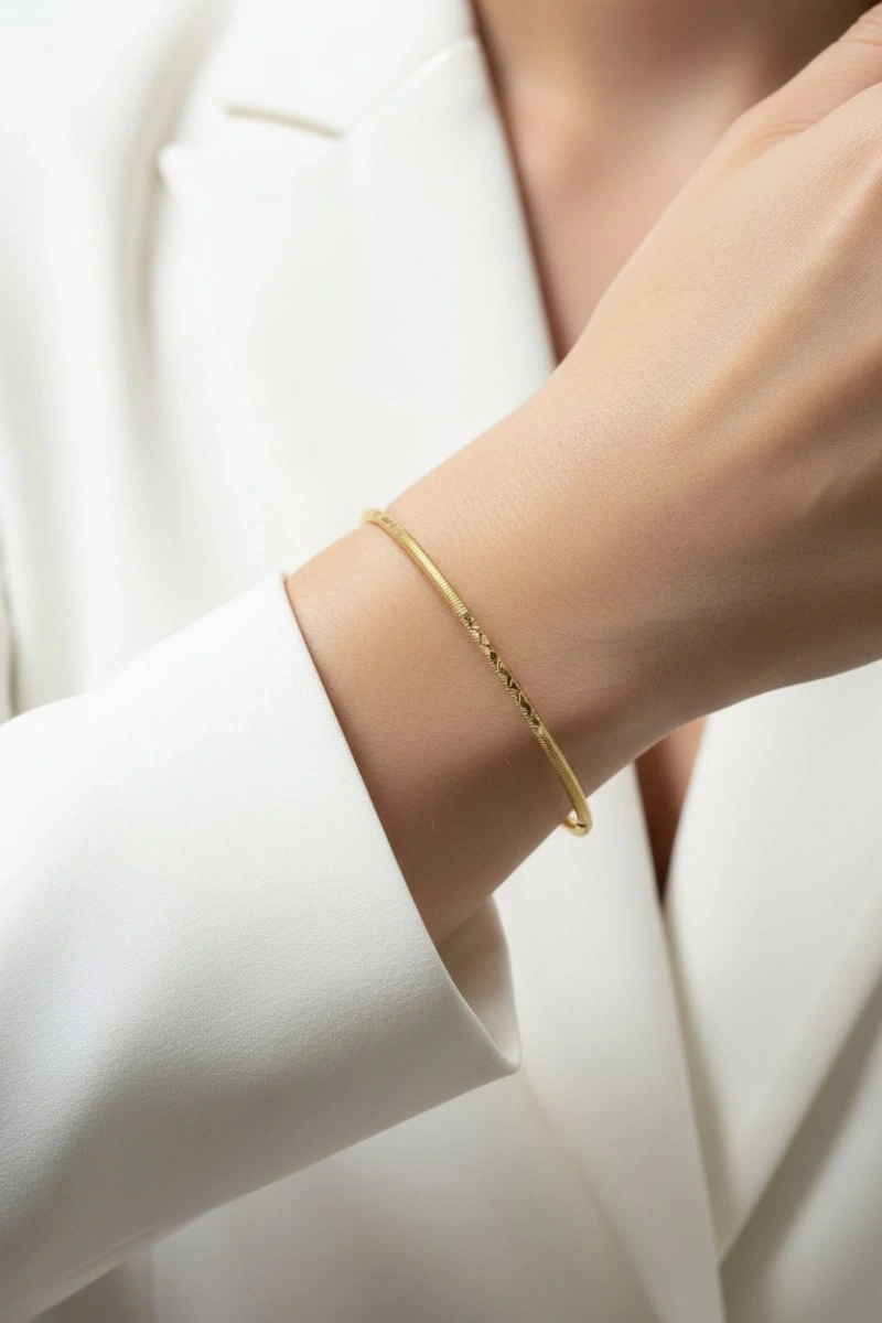 Sim Detaylı Gold Altın Kaplama Ajda Bilezik