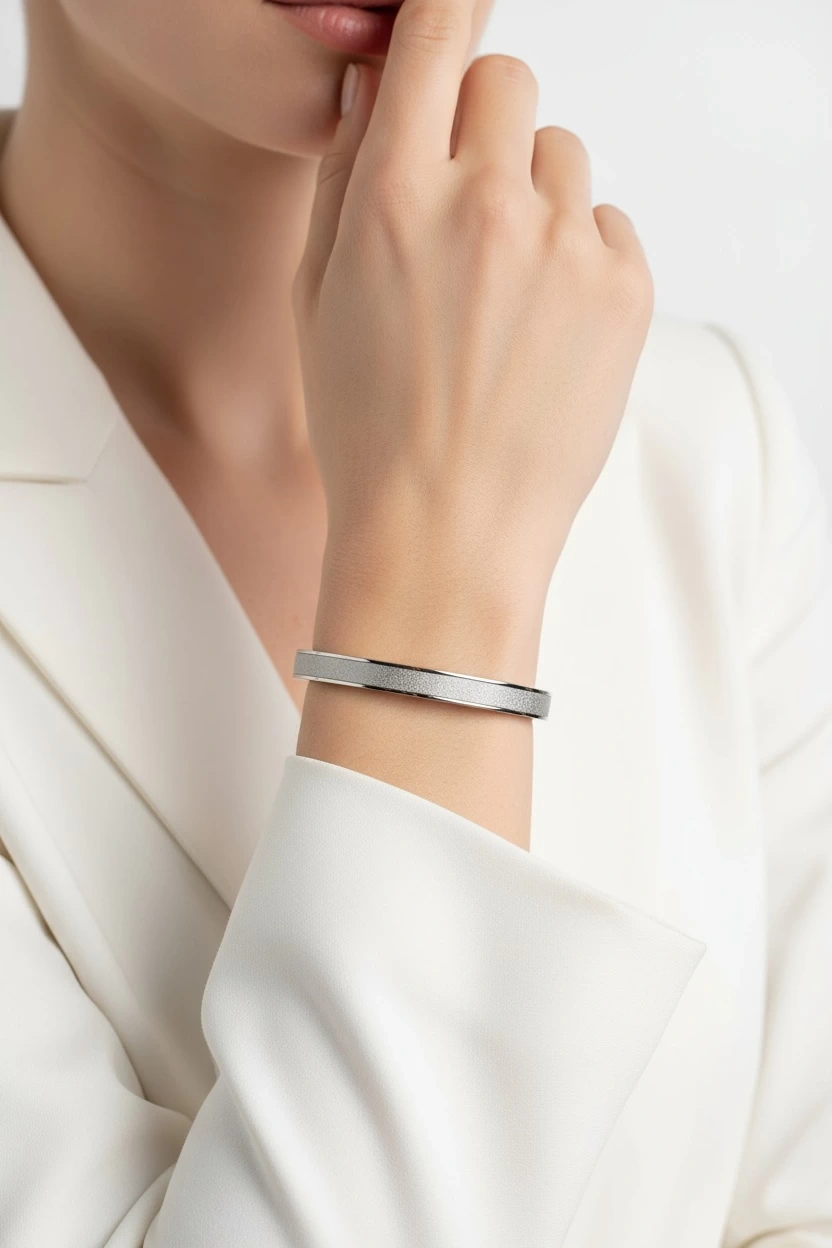 Simli Düz Kalın Beyaz Altın Kaplama Bileklik