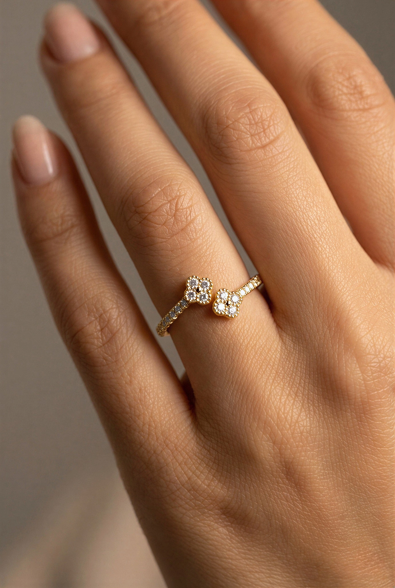 Çift Yonca Model Gold Altın Kaplama Yüzük