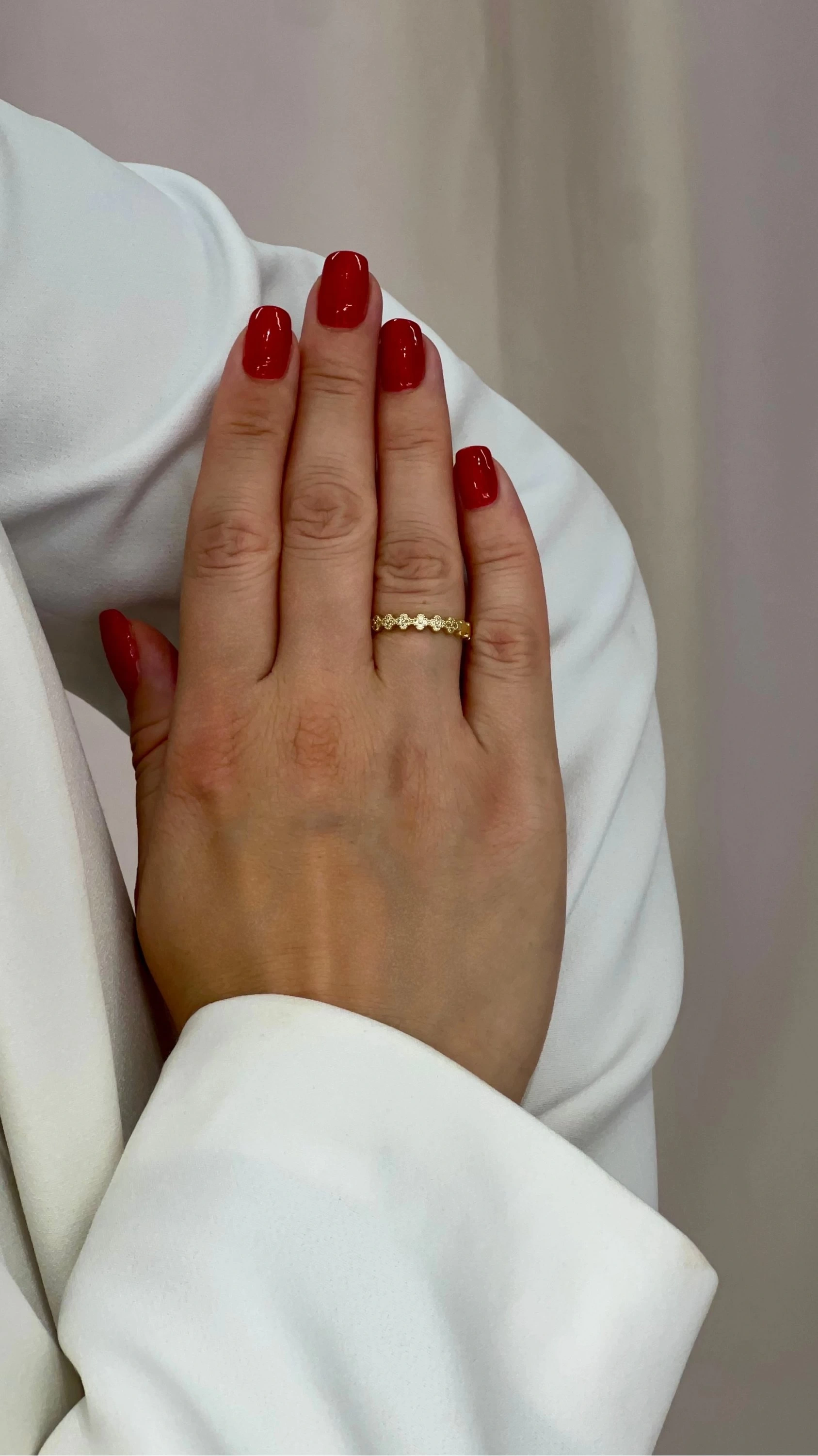 Sıra Taşlı Yonca Model Gold Altın Kaplama Yüzük